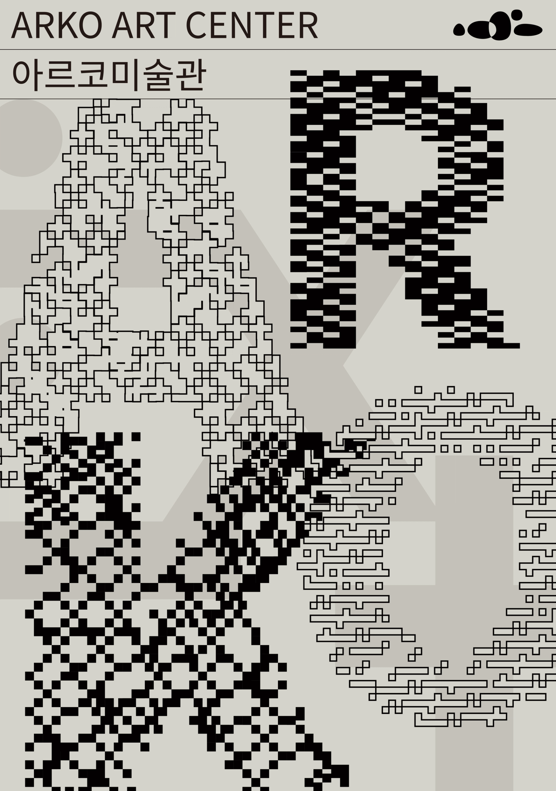 아르코미술관의 2024 비주얼 아이덴티티를 디자인했습니다. ➕➖✖️➗ 지속가능한 미술관인 아르코미술관은 유용·포용·협업·공유라는 운영방향을 갖고있습니다. 이러한 지속가능성을 향한 발걸음은 미술관의 기존 '친(親)환경'을 넘어 보다 당위성을 내포한 '필(必)환경'으로까지 이어집니다. 일부 작은 조각이 전체와 비슷한 기하학적 형태를 띄는 프렉탈 구조는 자연에서 쉽게 찾아볼 수 있는 패턴입니다. 아르코미술관의 더하고, 빼고, 곱하고, 나누는 운영방향을 나타내는 사칙연산 기호를 자연물에서 기인한 프렉탈 구조에 비유했습니다. 포스터는 기존의 아르코미술관의 상징적인 그리드를 활용하여 제작되었습니다. 포스터에 담긴 정보와 로고들은 그리드에 준수하여 단정하게 연출하였으며, 프렉탈 구조의 그래픽요소들은 그리드 위를 자유롭게 넘나드는 모습으로 구성했습니다. 이는 현대의 자유롭고 창의적인 신진작가를 모아 기획한 전시로 현대미술을 이끄는 아르코미술관을 상징합니다.