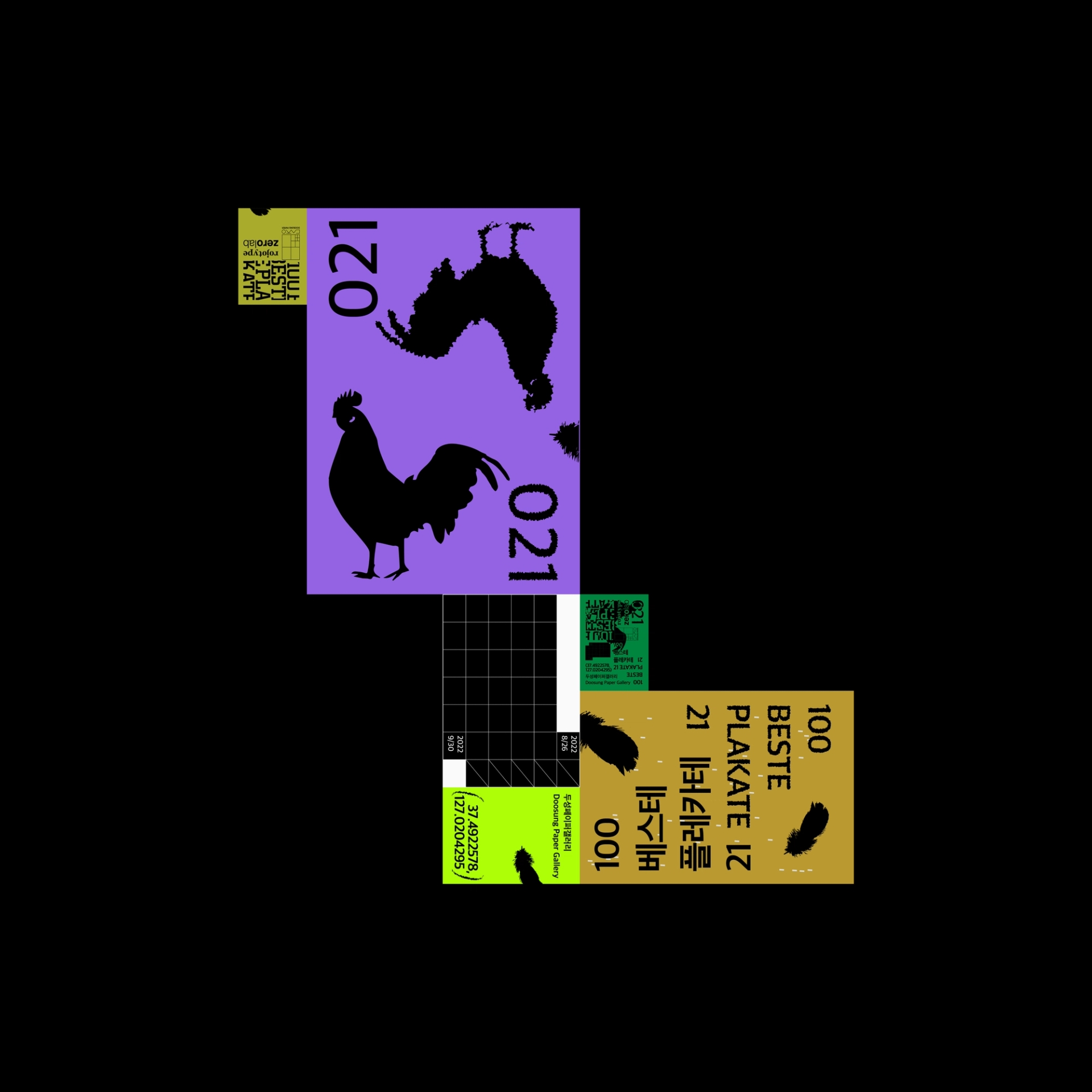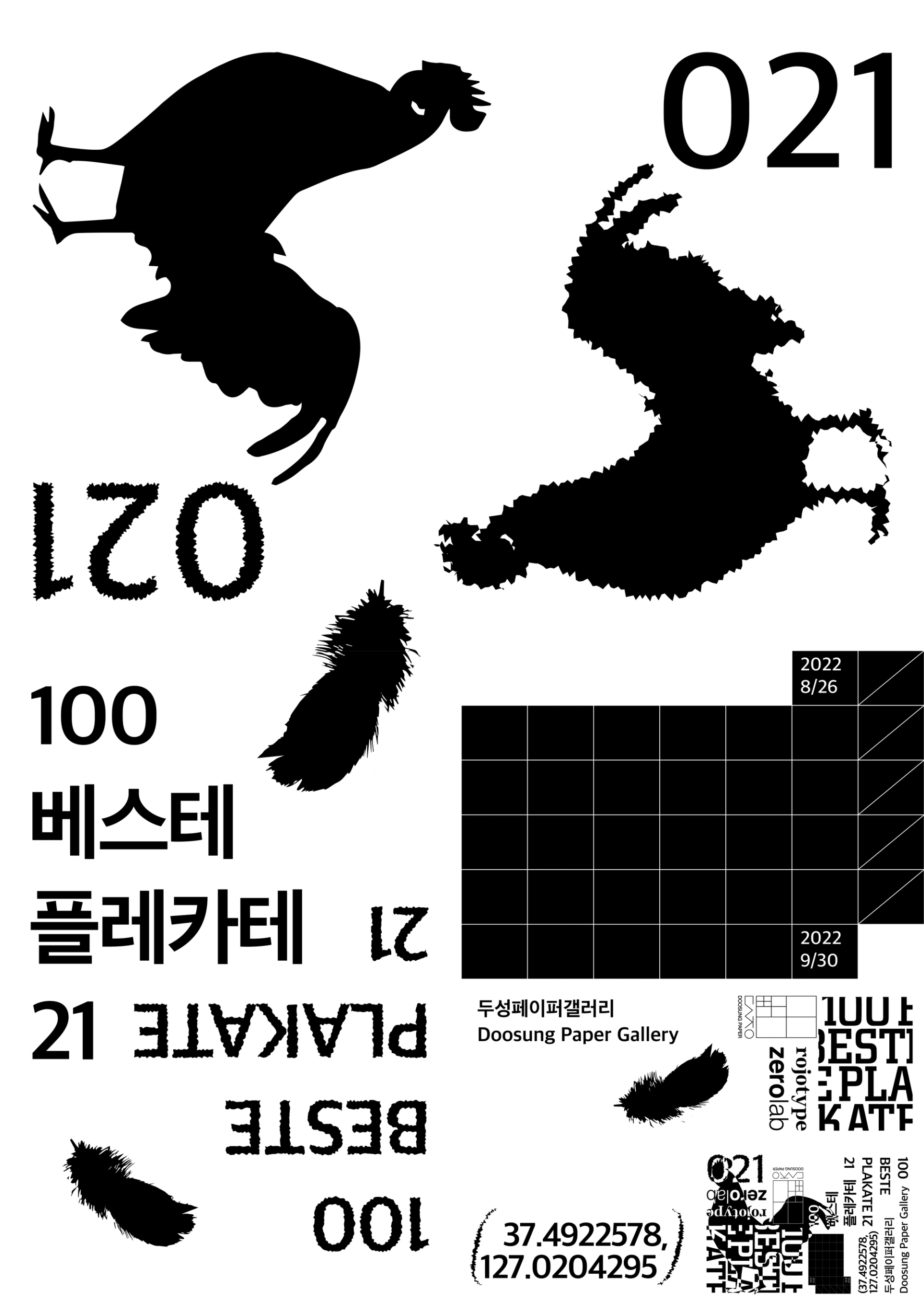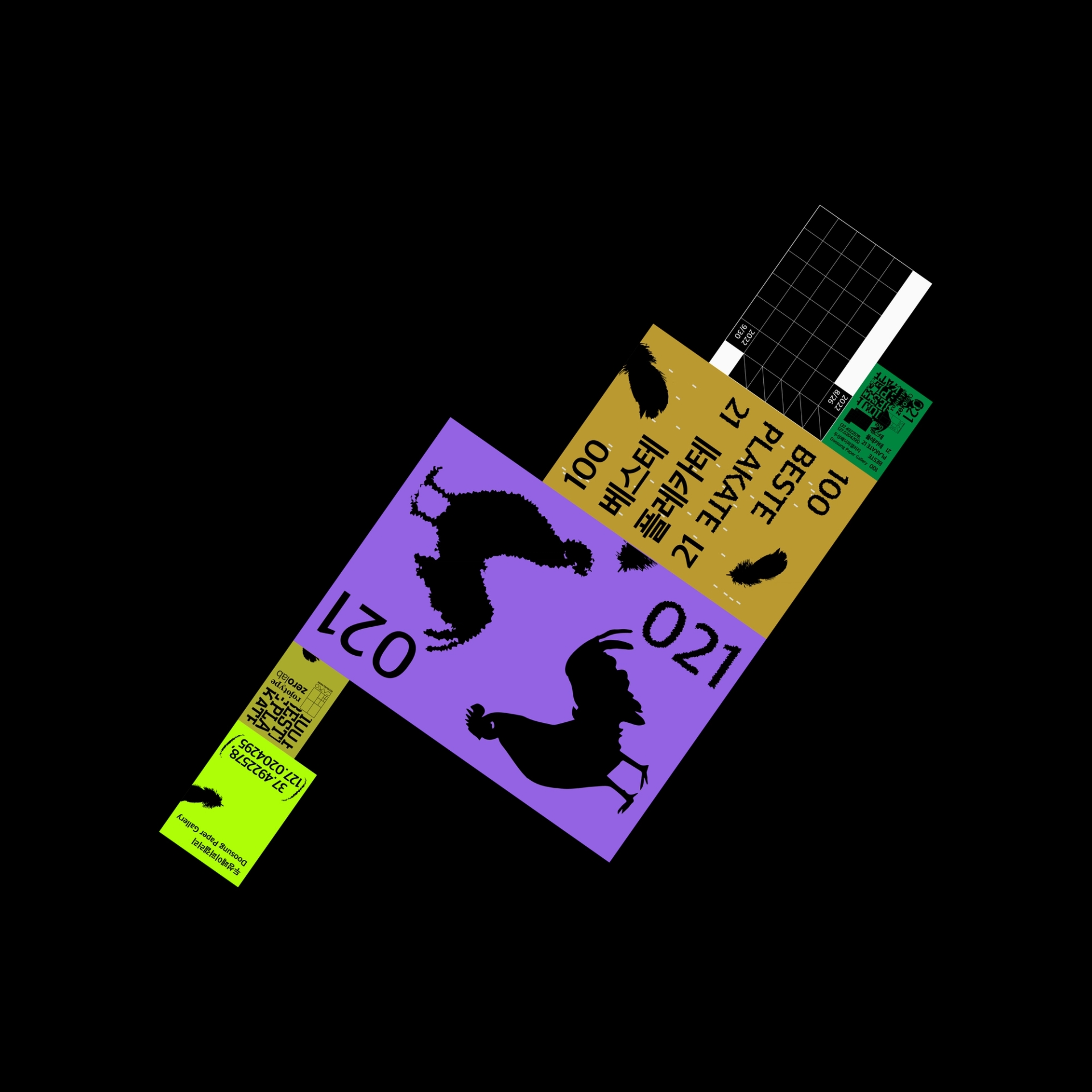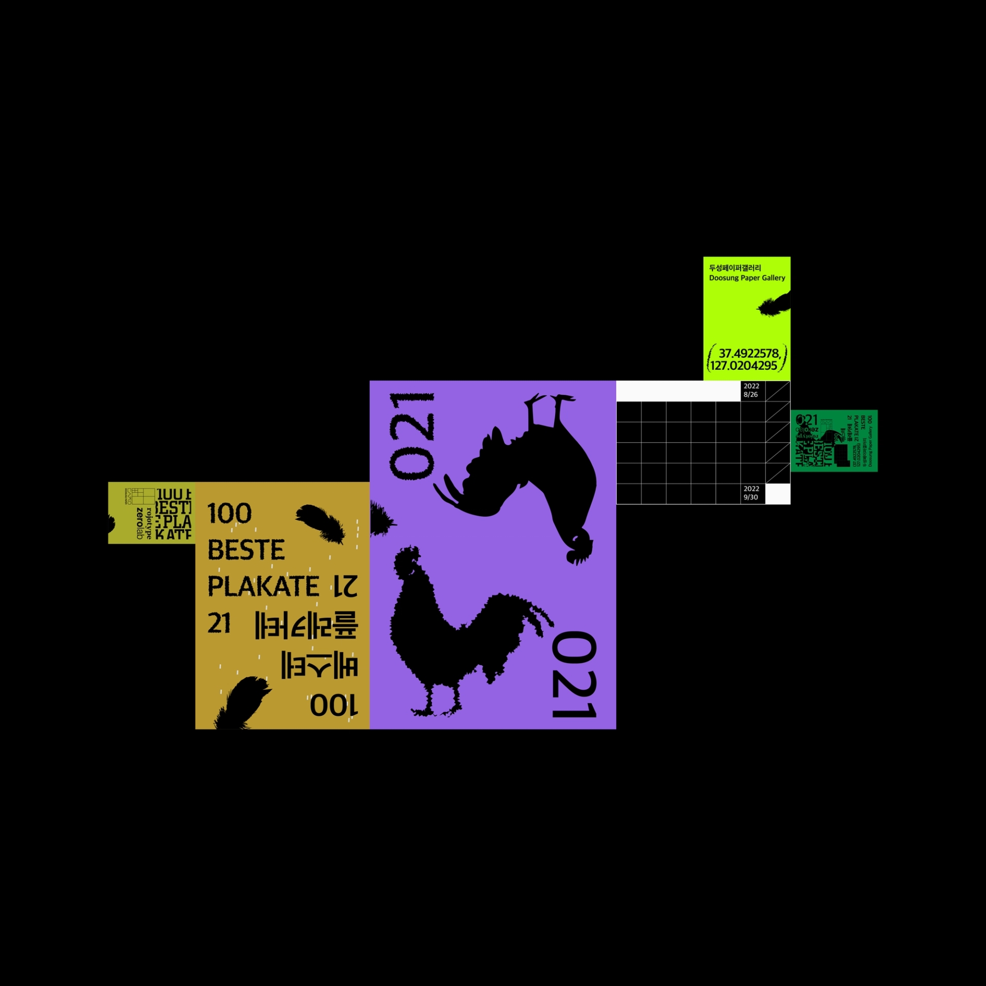 “소름”은 추위 등 외부자극에 근육이 수축하며 생기는 피부변화를 말하며, ‘닭살’이라 불린다. A3 조각에 “소름인”이라는 형용사를 시각적으로 표현하기위해 ‘소름’이 돋기 전의 닭과 ‘소름’이 돋은 닭을 제작했으며, 이를 칠교놀이의 형태처럼 맞물려 배치하였다. 이러한 맞물림이라는 규칙을 포스터 전체에 적용시켜 칠교놀이를 계속해서 연상시켰고, 포스터의 사이사이 흩날리는 닭털을 배치시켜 6조각으로 분리되어있는 포스터에 연속성, 연결감을 주었다. 전시기간을 표현해야하는 A5파트에 칠교놀이의 일환으로 사각형, 삼각형으로 이루어진 캘린더를 디자인하여 삽입하였다. “7개의 조각으로 다양한 형태를 만들며 상상력을 기르는 놀이인 '탱그램tangram'에서 아이디어를 얻어 워크숍을 기획했습니다. A2사이즈의 포스터를 종이 규격에 따라 A3부터 A7까지 6조각으로 나누고 '(1)이미지 (2)제목 (3)날짜 (4)장소 (5)로고 (6)전체 내용'을 각 칸에 담아 디자인했습니다. 이후 프린트된 조각들을 여러 방법으로 흩트리고 어지르며 포스터의 흥미로운 조형을 탐구하는 시간을 가졌습니다. 결과물은 《100BP21》 전시장에 전시중입니다.” 🔗 @sa.rok.sarok🐓🧩🎰
