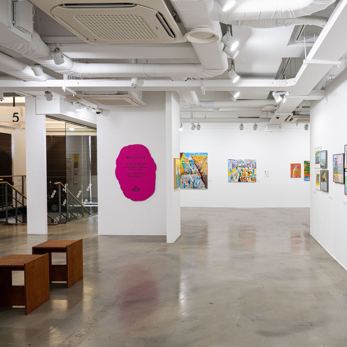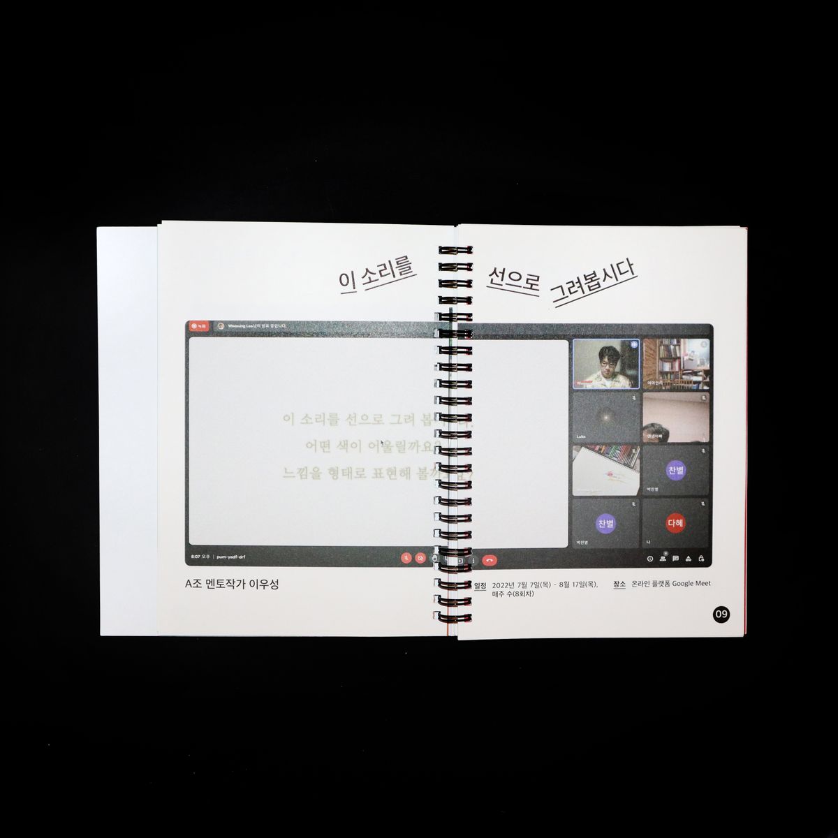 무지개는 원래 커다란 원형이라고 한다. 굴절률이 높은 색은 바깥에, 굴절률이 낮은 색은 안쪽에 띠를 형성하기에 사람의 눈에는 반원, 부채꼴로 보인다.무지개의 특성을 디자인요소로 풀어내 타이포그라피를 제작하였다. 디자인 곳곳에 빗방울처럼 내려오는 참여작가의 이름과 반짝반짝 빛나는 태양광을 타이포그래피 주변에 요소로 배치하였다. 이는 참여작가(빗방울)와 가능성(태양광/상상마당)이 만나 오버더레인보우(무지개)라는 전시를 만들어냄을 의미한다. 오버더레인보우 전시 특유의 생동감, 자유로움을 표현하기 위해 손글씨같은 떨림을 타이포그래피에 의도적으로 녹여냈으며, 채도가 높고 선명한 색상 팔레트를 활용하여 다양성과 조화로움을 표현하였다.전시 인쇄물에는 점자를 병행 표기하여 장애인과 비장애인 모두가 함께 즐길 수 있는 배리어프리(barrier free)공간을 지향하였다.