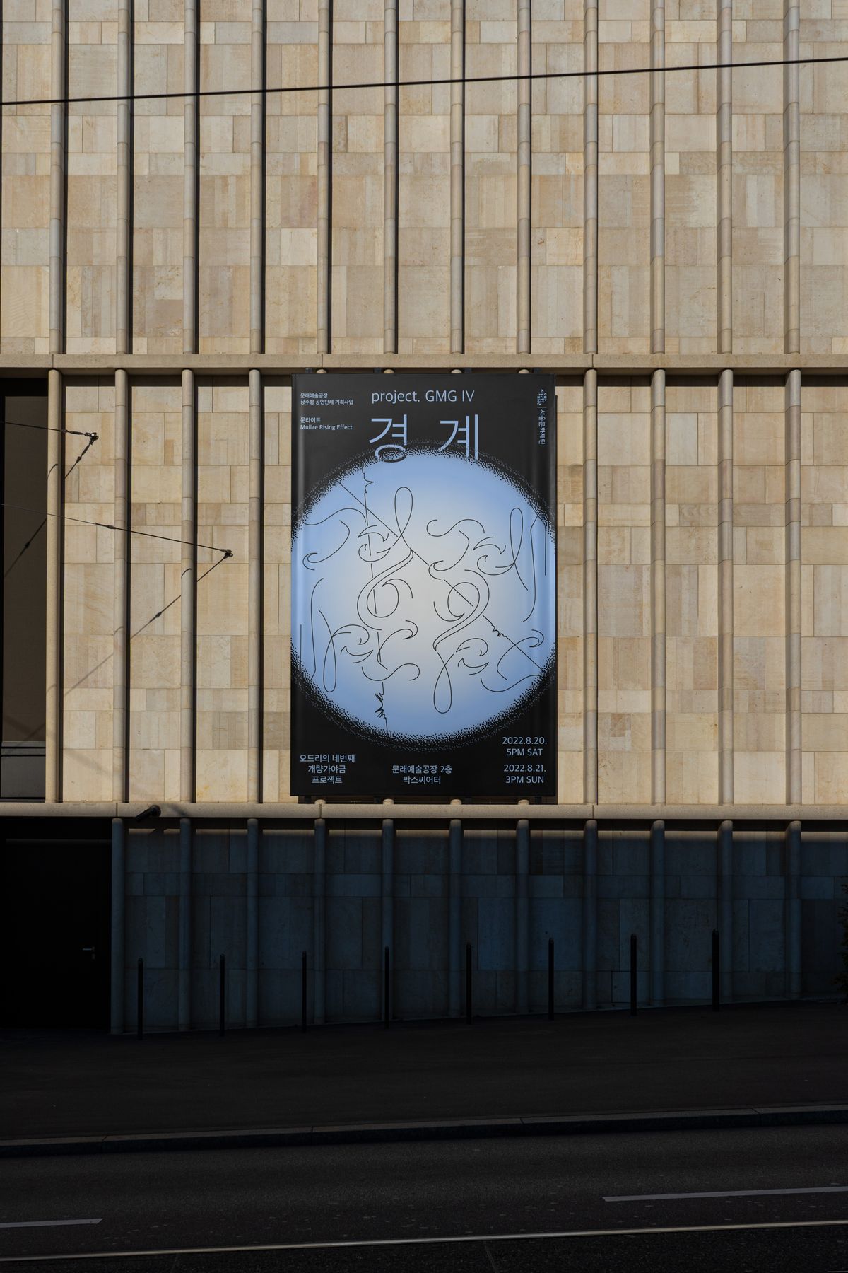 문래예술공장|Poster, Leaflet, SNS image, Banner <경계>그래픽의 중심에 위치한 타이포그라피는 가야금의 명주실이 한 데 모여있다 풀리는 모습을 활자의 형태로 재해석한 것이다. 명주실이 끊기고 이어지는 모습, 상하 반전된 두개의 경계라는 텍스트가 부드럽게 조화를 이루고있는 모습을 통해 전통과 현대를 자연스럽게 넘나들고 어우르는 가야금 앙상블 오드리(ODREY)를 표현했다.타이포그라피 사이사이를 지나는 직선요소는 경계라는 공연명의 의미를 한번 더 상기시키기 위해 배치했으며, 그 위의 파형은 연주자가 손으로 가야금을 뜯거나 튕기는 소리를 시각적으로 표현한 것이다포스터의 전체적인 이미지는 어둑하고 적막한 밤의 신비롭고 은은한 스포트라이트를 연상시킨다. 이는 오드리(ODREY)의 정체성과 한해동안 하나의 예술단체를 집중 조망하는 문래예술공장의 사업인 문라이트를 상징한다.Typography: 김정은 @jngnkim