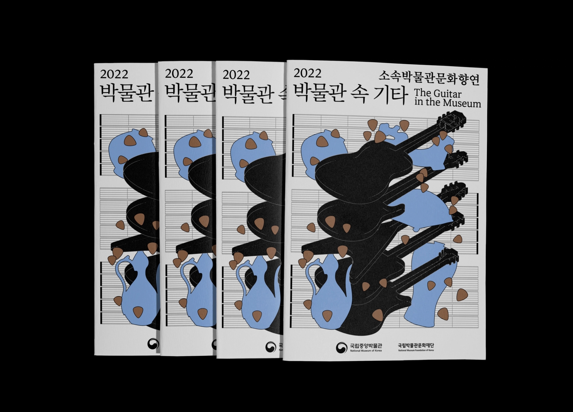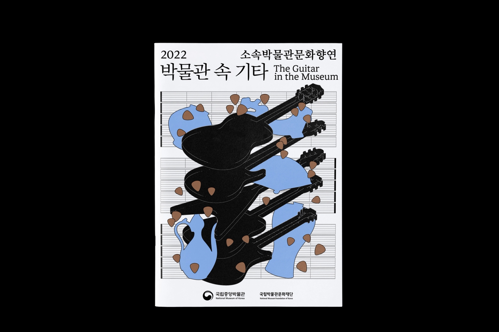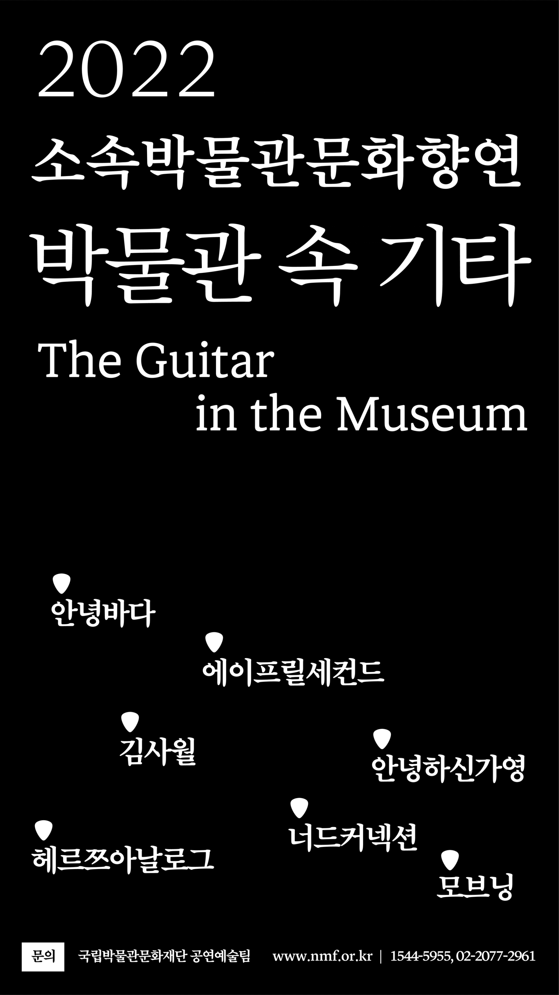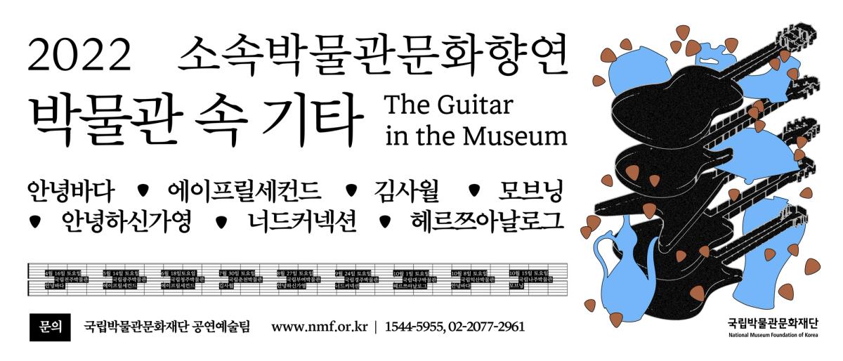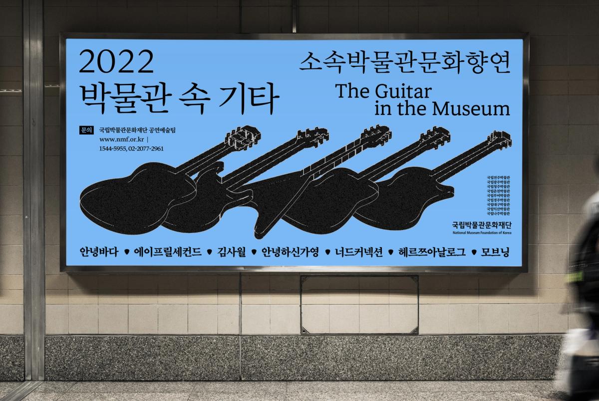 포스터안에는 각기 다른 모양의 개성있는 기타들이 층층이 쌓여있으며, 이는 <박물관 속 기타>에 참여하는 아티스트를 상징한다. 기타 주변에는 박물관을 상징하는 요소(유물)와 그 위로 흩날리는 꽃잎모양의 기타 피크가 둘러싸고있는데, 이를 통해 자유롭고 산뜻한 행사의 분위기를 상상할 수 있도록 하였다. 아티스트 정보와 일시 정보가 담긴 아홉개의 검정 박스를 악보위에 음표처럼 배치시키고, 타이틀과 서브텍스트 등을 상하단에 가지런히 배치하여 포스터의 전체적인 형태가 악보를 연상시키도록 하였다.