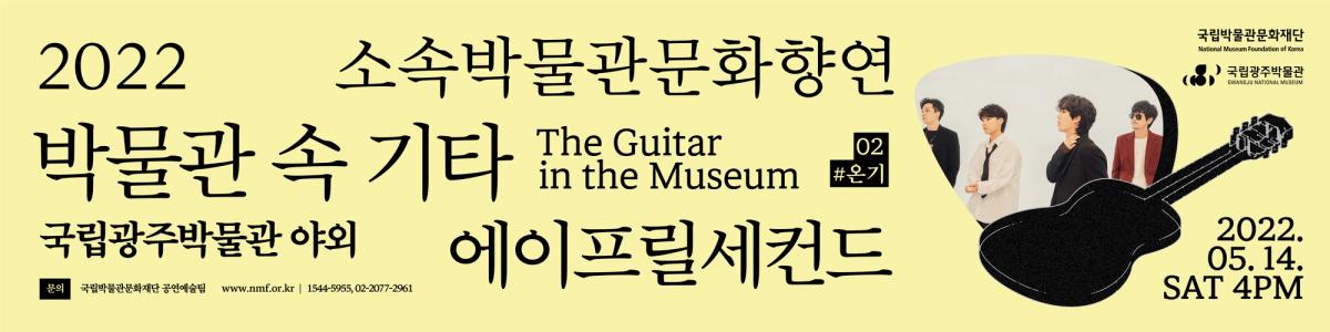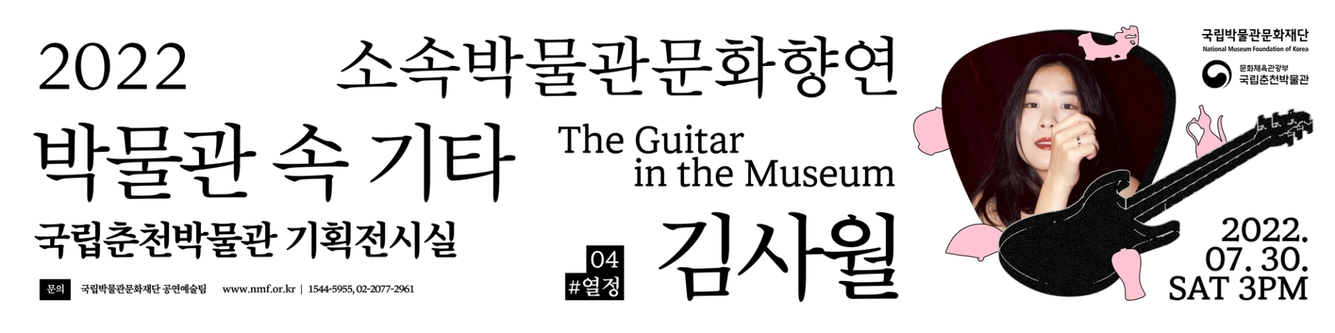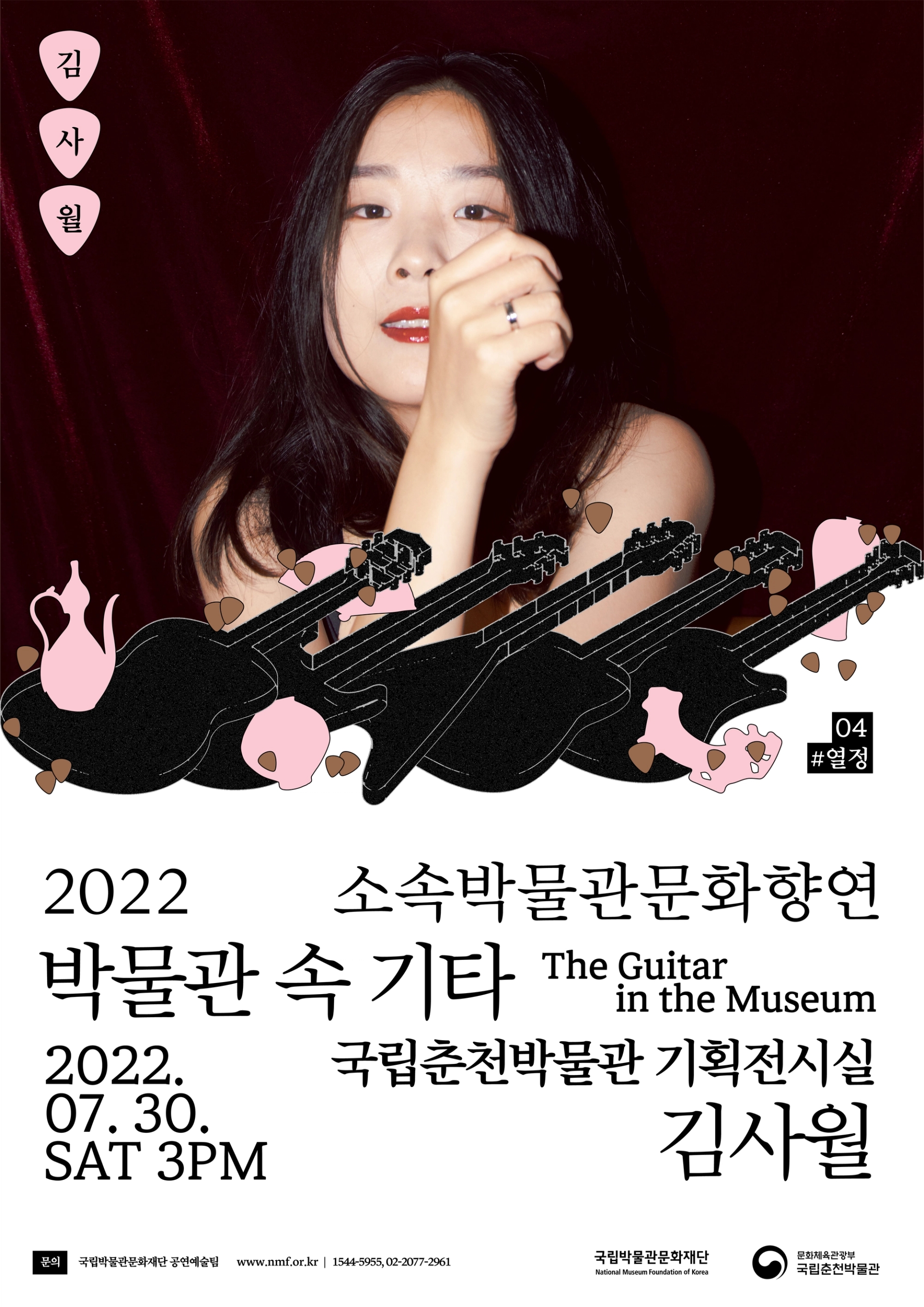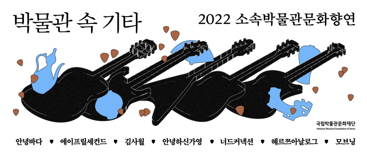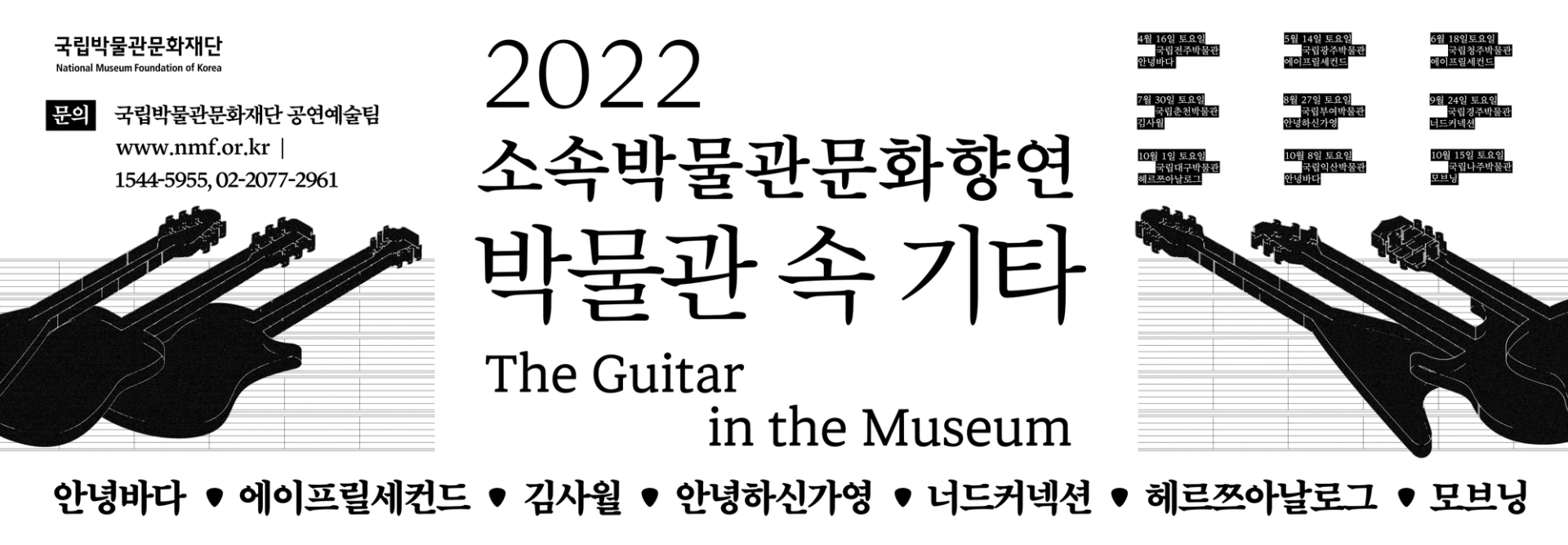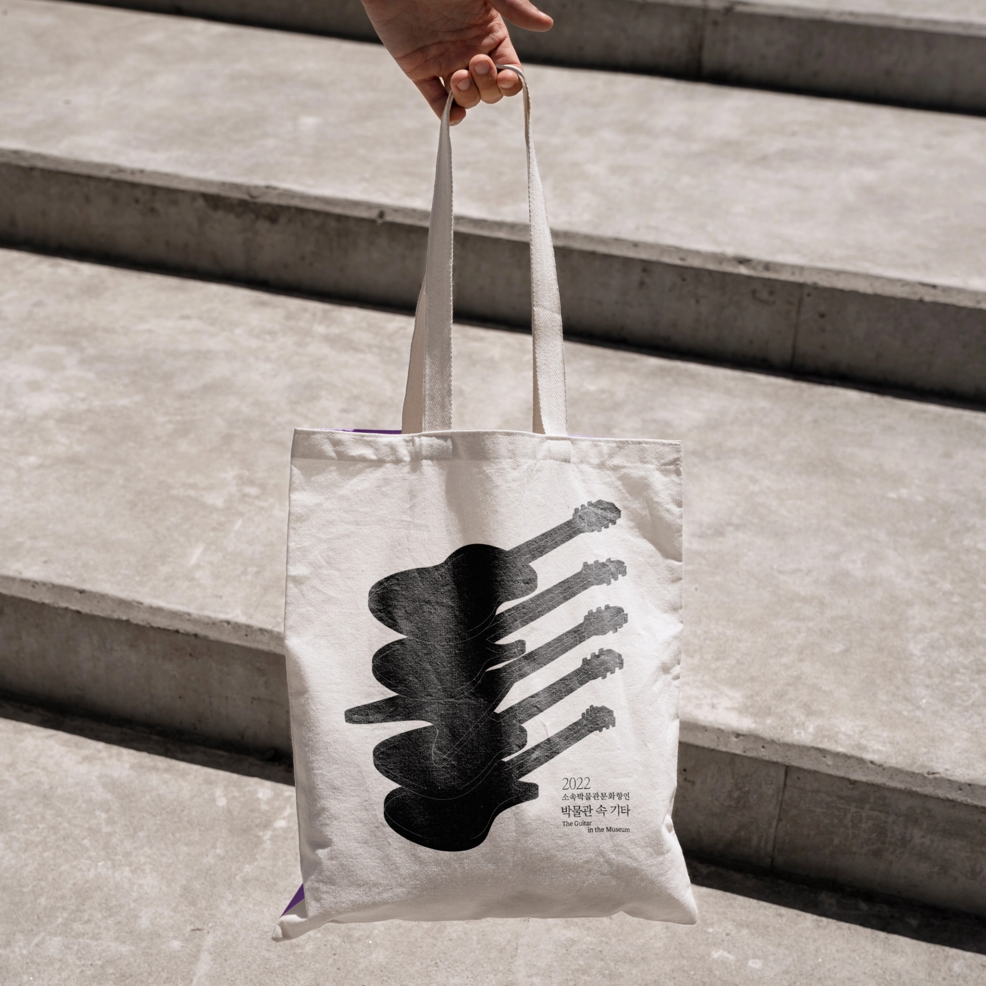 포스터안에는 각기 다른 모양의 개성있는 기타들이 층층이 쌓여있으며, 이는 <박물관 속 기타>에 참여하는 아티스트를 상징한다. 기타 주변에는 박물관을 상징하는 요소(유물)와 그 위로 흩날리는 꽃잎모양의 기타 피크가 둘러싸고있는데, 이를 통해 자유롭고 산뜻한 행사의 분위기를 상상할 수 있도록 하였다. 아티스트 정보와 일시 정보가 담긴 아홉개의 검정 박스를 악보위에 음표처럼 배치시키고, 타이틀과 서브텍스트 등을 상하단에 가지런히 배치하여 포스터의 전체적인 형태가 악보를 연상시키도록 하였다.