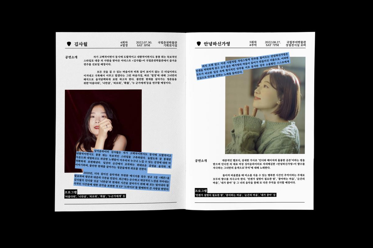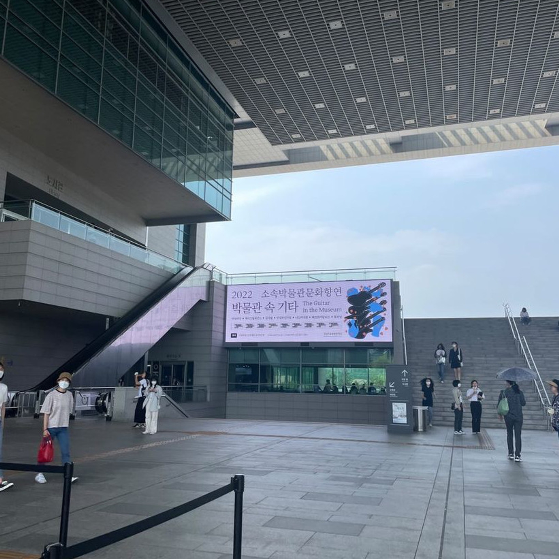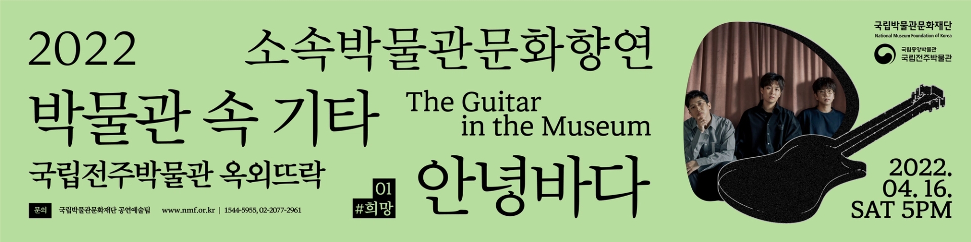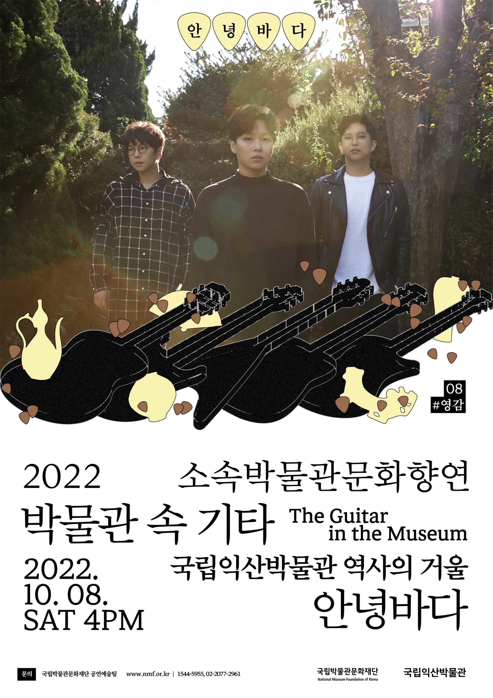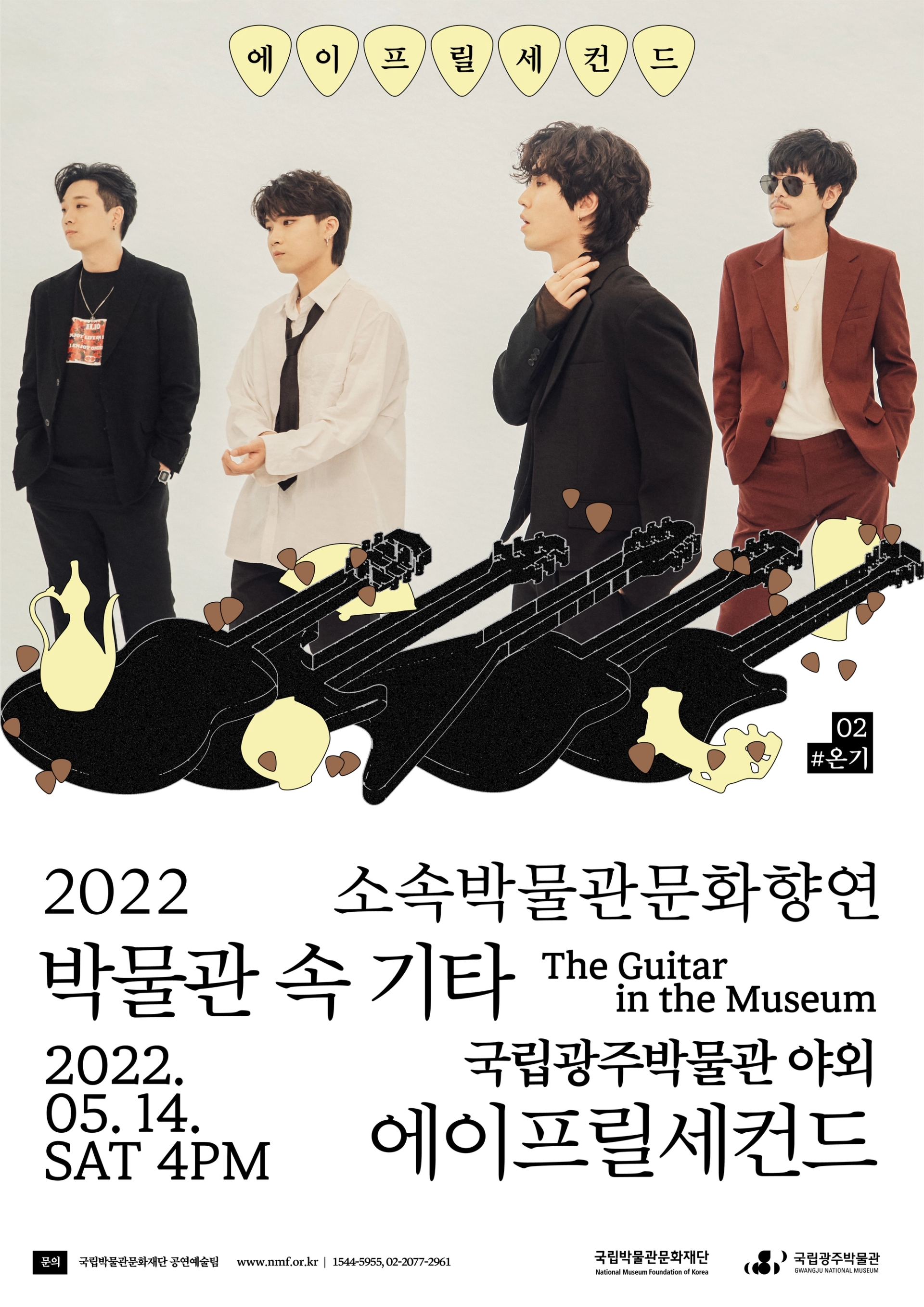 포스터안에는 각기 다른 모양의 개성있는 기타들이 층층이 쌓여있으며, 이는 <박물관 속 기타>에 참여하는 아티스트를 상징한다. 기타 주변에는 박물관을 상징하는 요소(유물)와 그 위로 흩날리는 꽃잎모양의 기타 피크가 둘러싸고있는데, 이를 통해 자유롭고 산뜻한 행사의 분위기를 상상할 수 있도록 하였다. 아티스트 정보와 일시 정보가 담긴 아홉개의 검정 박스를 악보위에 음표처럼 배치시키고, 타이틀과 서브텍스트 등을 상하단에 가지런히 배치하여 포스터의 전체적인 형태가 악보를 연상시키도록 하였다.