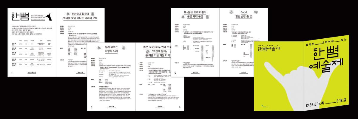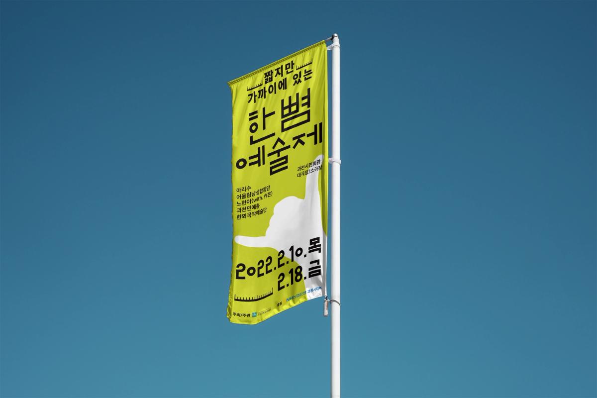 ≪한뼘예술제≫는 일주일이라는 짧은 기간 동안 시민들과 가까이에 있는 과천의 예술인과 예술단체가 선보이는 공연이다.다양한 연령대의 관객이 참여하는 행사인 <한뼘예술제>의 의미를 쉽게 이해할 수 있도록 ‘한뼘’이라는 키워드를 직접적으로 나타낼 수 있는 손가락 일러스트를 중앙에 배치시켰다. 포스터를 접하는 모든 사람들이 안에 담긴 정보를 쉽게 이해할 수 있도록 타이틀과 주요정보는 한줄로 배치시키고, 기타 서브 정보들은 좌측정렬하는 등 가독성을 우선시하여 제작되었다.<한뼘예술제> 타이포그라피는 자의 눈금을 해체시켜 생긴 긴 직사각형을 요소로 사용하였으며, 서브타이틀이나 일정 사이에 자의 눈금을 배치시켜 "짧지만 가까이에 있다"는 행사의 주제가 연상되도록 디자인했다.