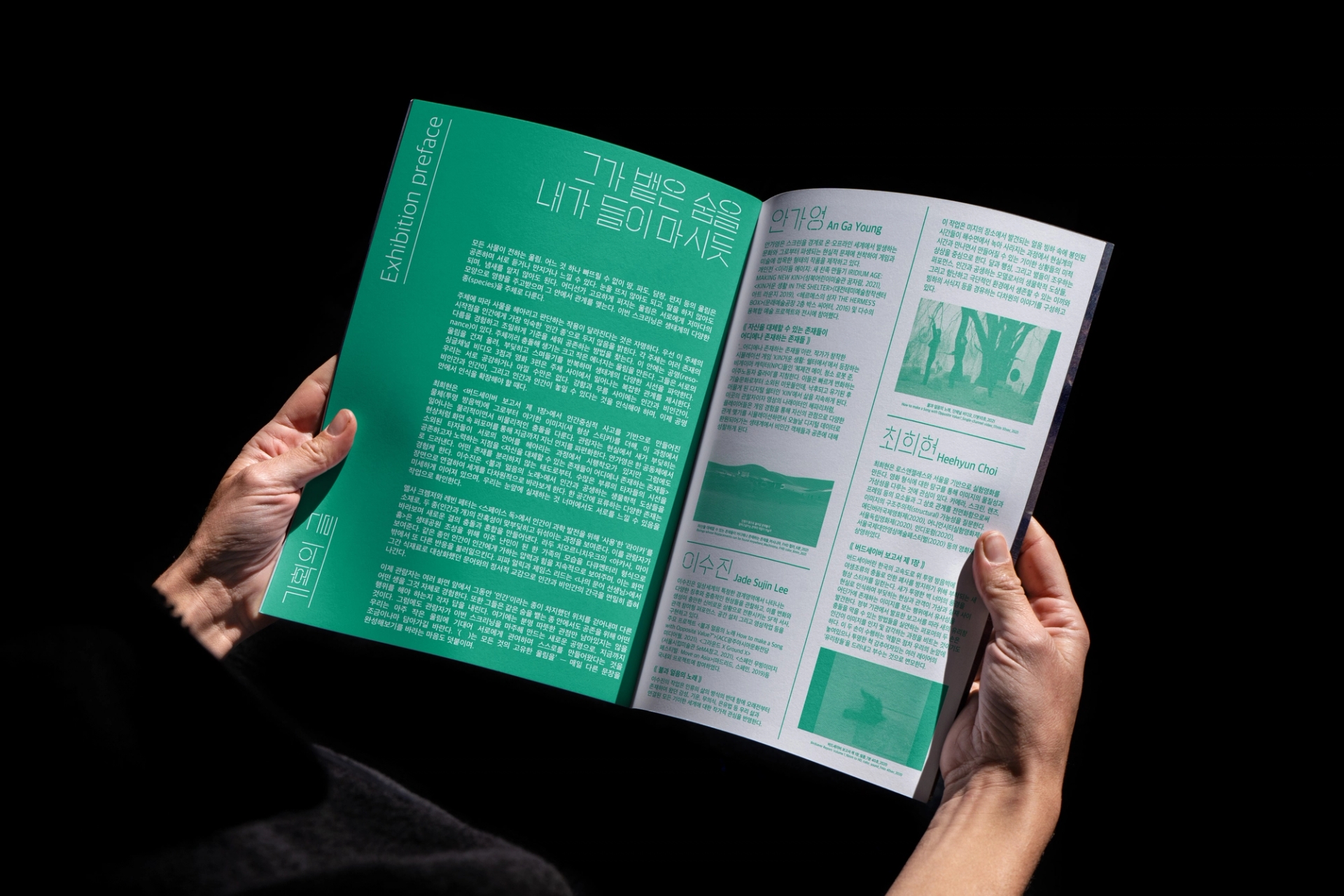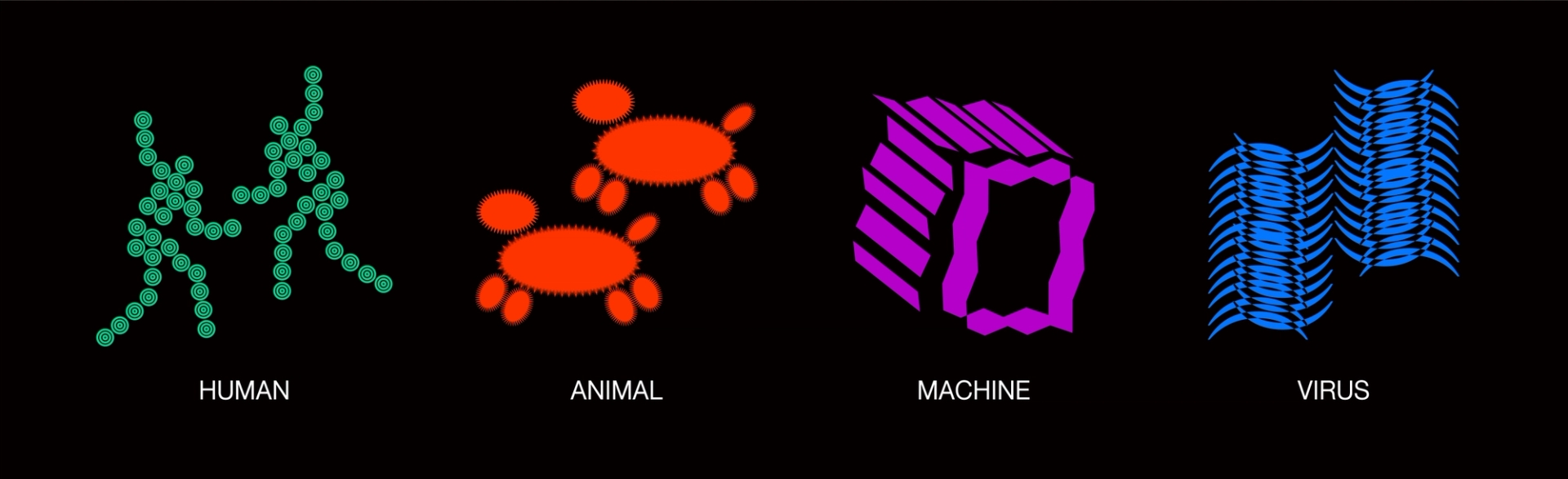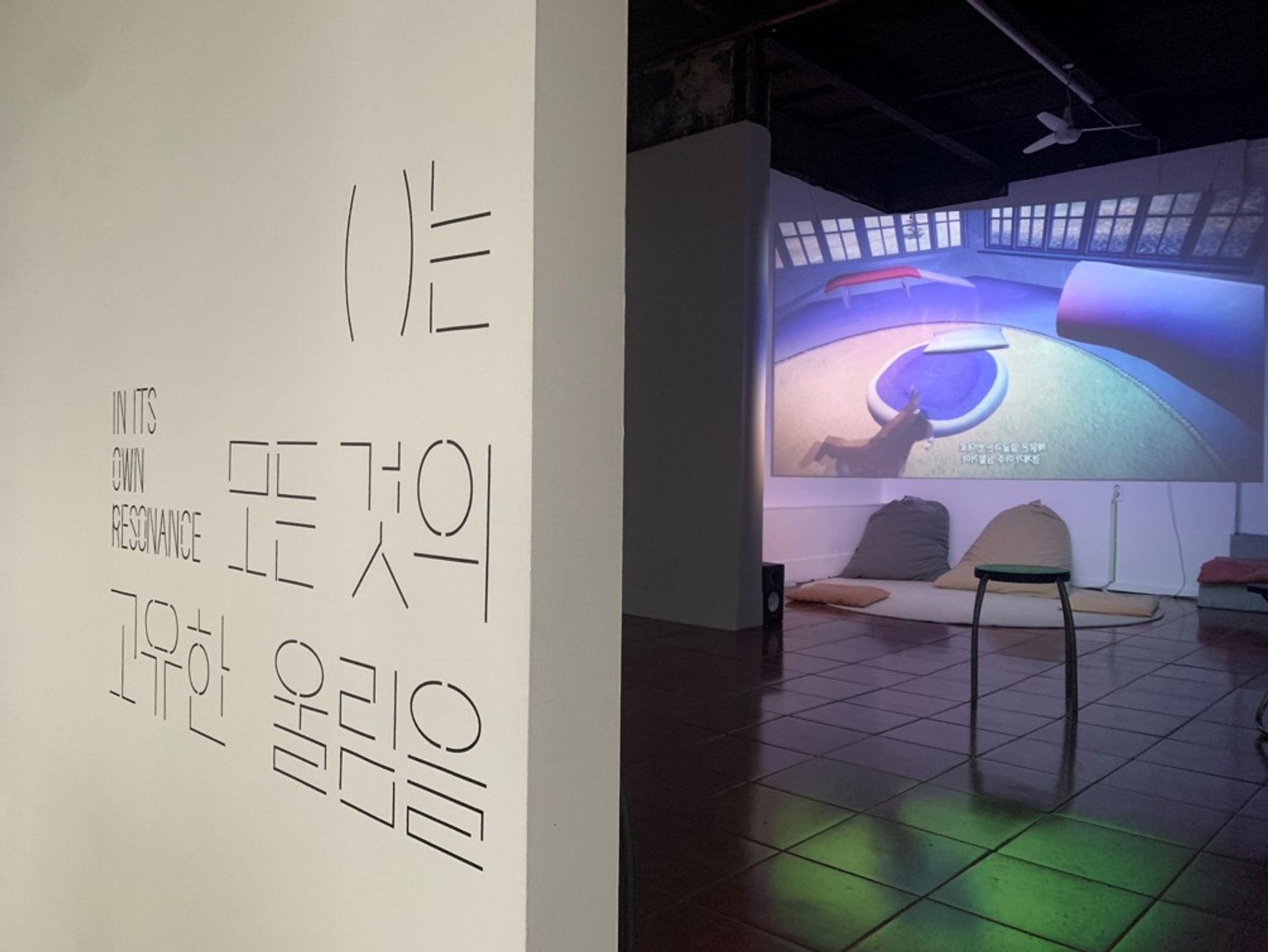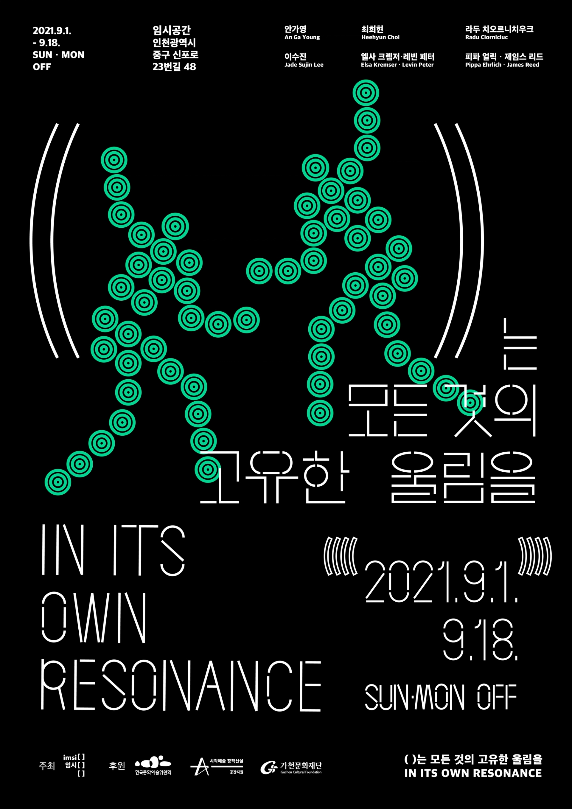 모든 사물이 전하는 울림은 공존한다는 전시의 의미를 전달하기 위해글씨 사이사이 빈 공간을 주어 공명을 표현한 타이포그래피를 중심으로 인간,동물,기계,균 을 표현한 일러스트를 배치하였다. 전시 타이틀의 괄호()를 디자인 요소로 활용하여 일러스트 주변에 반복적으로 배치하여 모든 주체가 고유한 진동을 가지고있음을 표현하였고, 일러스트 하나하나는 진동과, 떨림, 리듬감을 느낄 수 있는 요소로 이루어져있다.