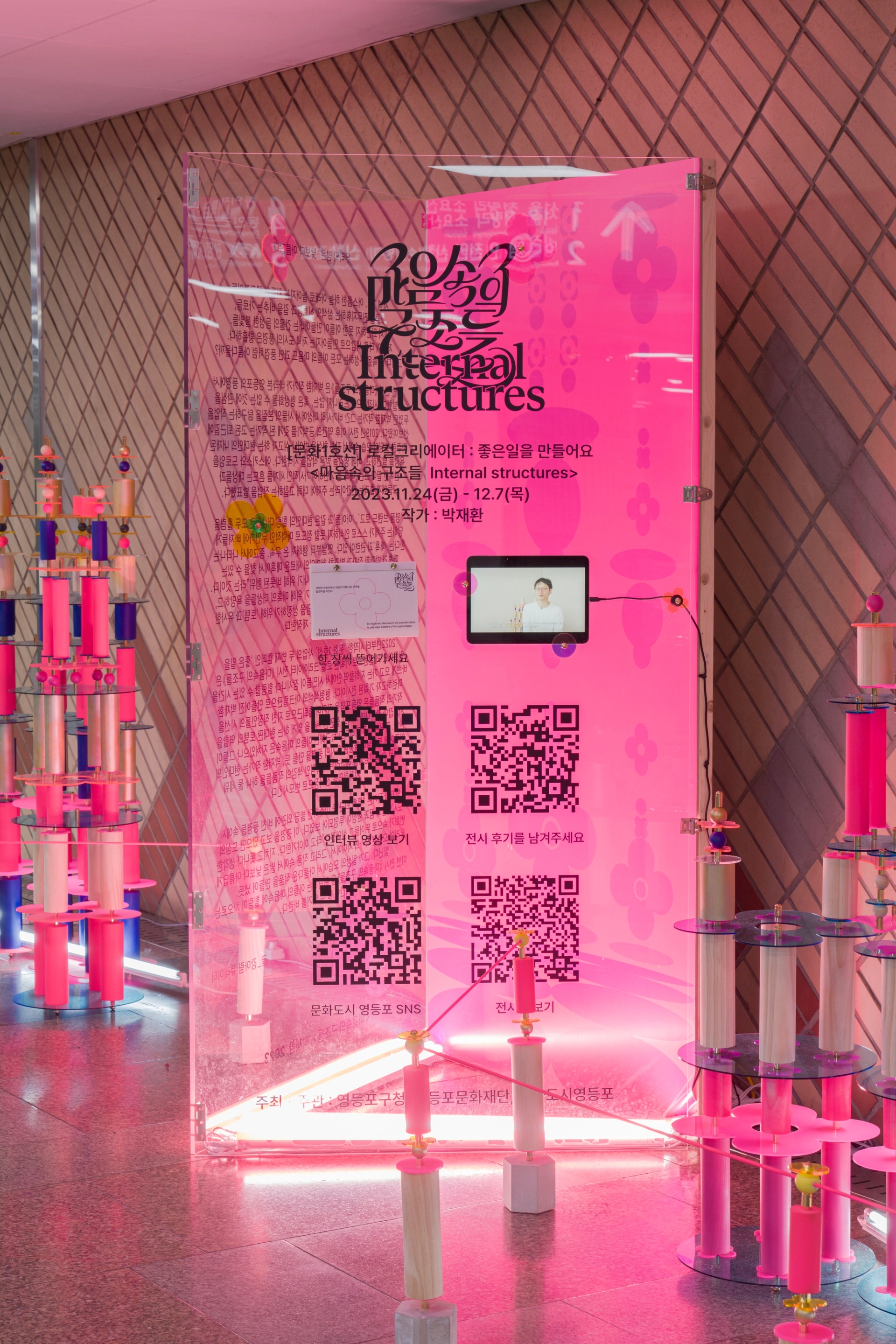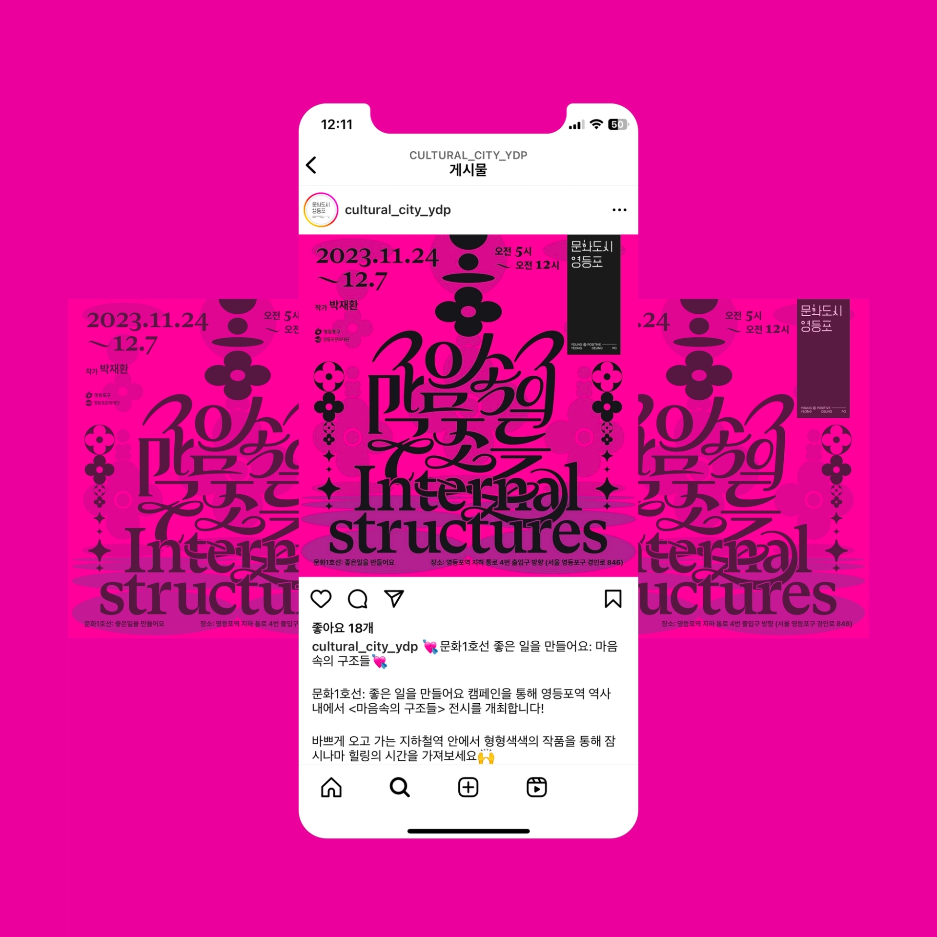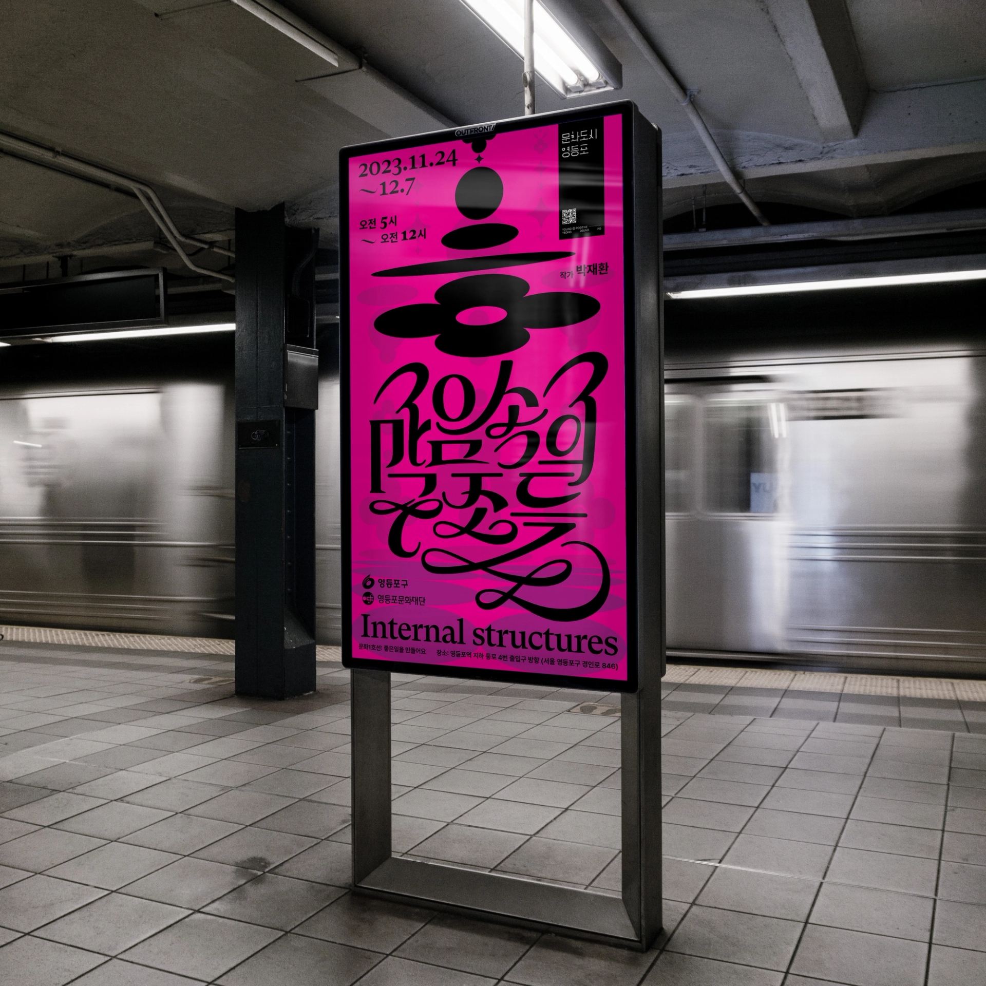 포스터는 "매혹의 언어"를 시각적으로 해석하여 표현한 그래픽으로 구성되어있다. 타이포그래피와 도형이 조합된 중앙의 그래픽은 박재환작가의 작품의 구조와 닮아있으며, 수용자로 하여금 토템 혹은 신비로운 동상처럼 보여지도록 제작했다. 화려하고 매혹적인 포스터는 일상에 지친 직장인의 불안정한 마음, 복잡한 내면을 잠시 잊게 한다. 매혹, 종교, 우상 등의 이미지에서 시작하여 만신의 춤을 소재로 하는 작품까지 존재하는 전시인 만큼, 유기적인 이미지가 담긴 역동적인 타이포그래피를 제작했다. 만신의 휘날리는 천의 이미지, 우상이란 존재의 강렬하고 화려한 이미지를 표현하기 위해 획의 형태를 다양하게 사용했다. 국문 타이틀을 메인으로 전개된 타이포그래피는 서로가 감싸고 얽혀있는 형태를 이루고있으며, 이는 "매혹"이라는 전시 주제를 시각적으로 표현한것이다. 그래픽은 작가가 표현하는 우상, 토템의 이미지를 표현하기 위해 각 도형 요소를 조합하여 또다른 토템을 재생성했다. 바닥면의 원 요소에서부터 층위를 가지며 상승하며 빛을 투과하는 요소로 구성되는 그래픽은 작가의 작품, 전시의 분위기를 표현한다.