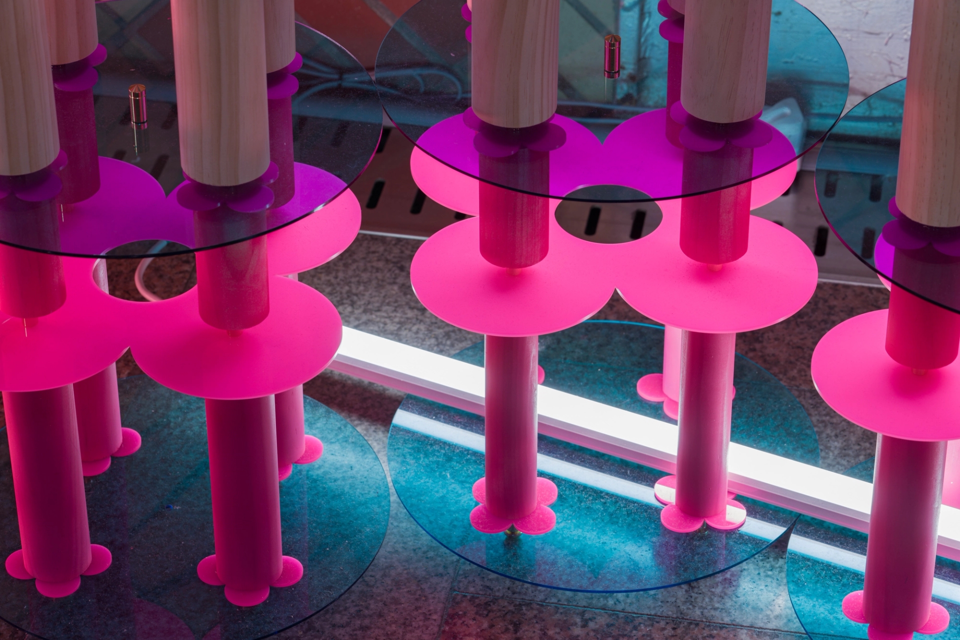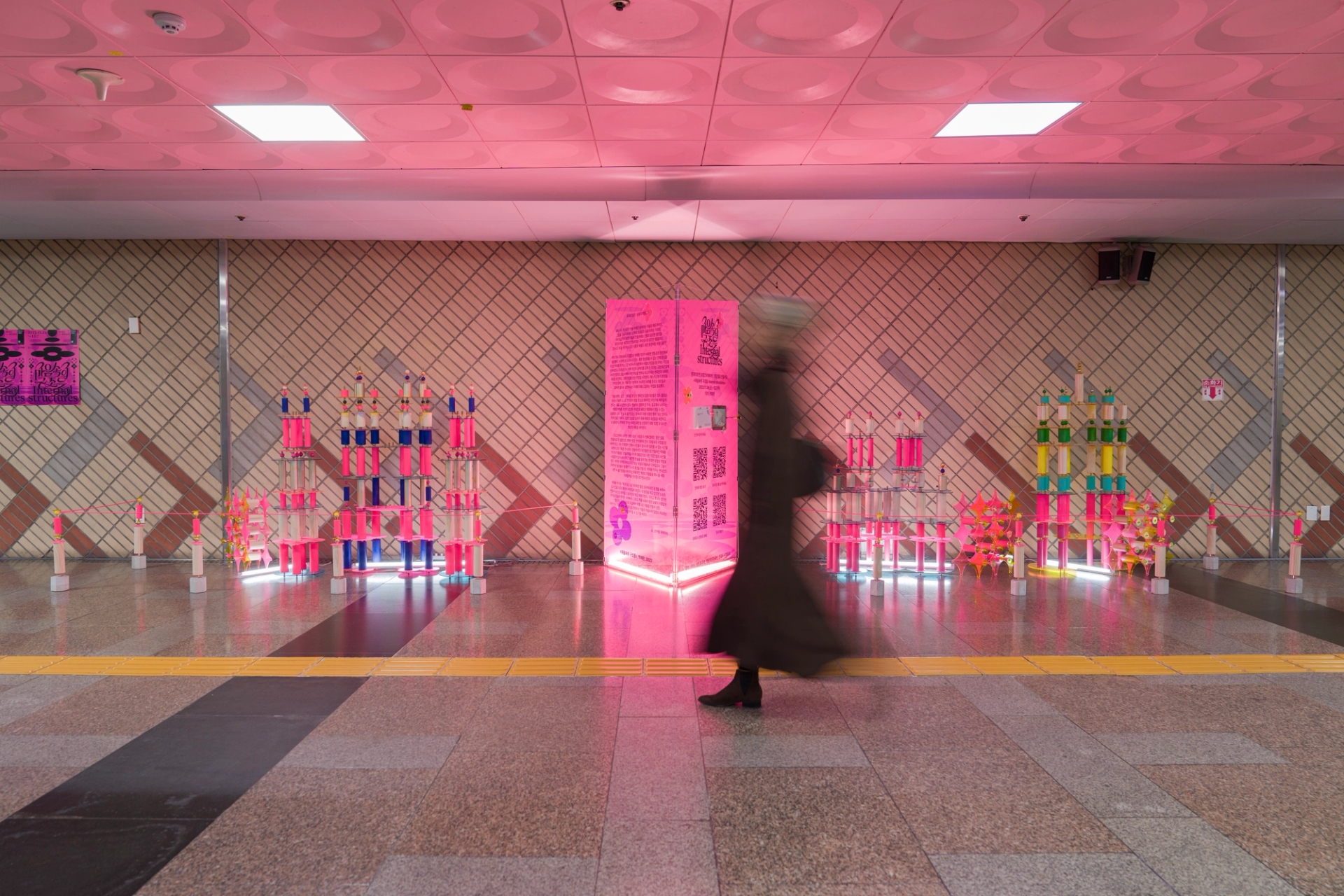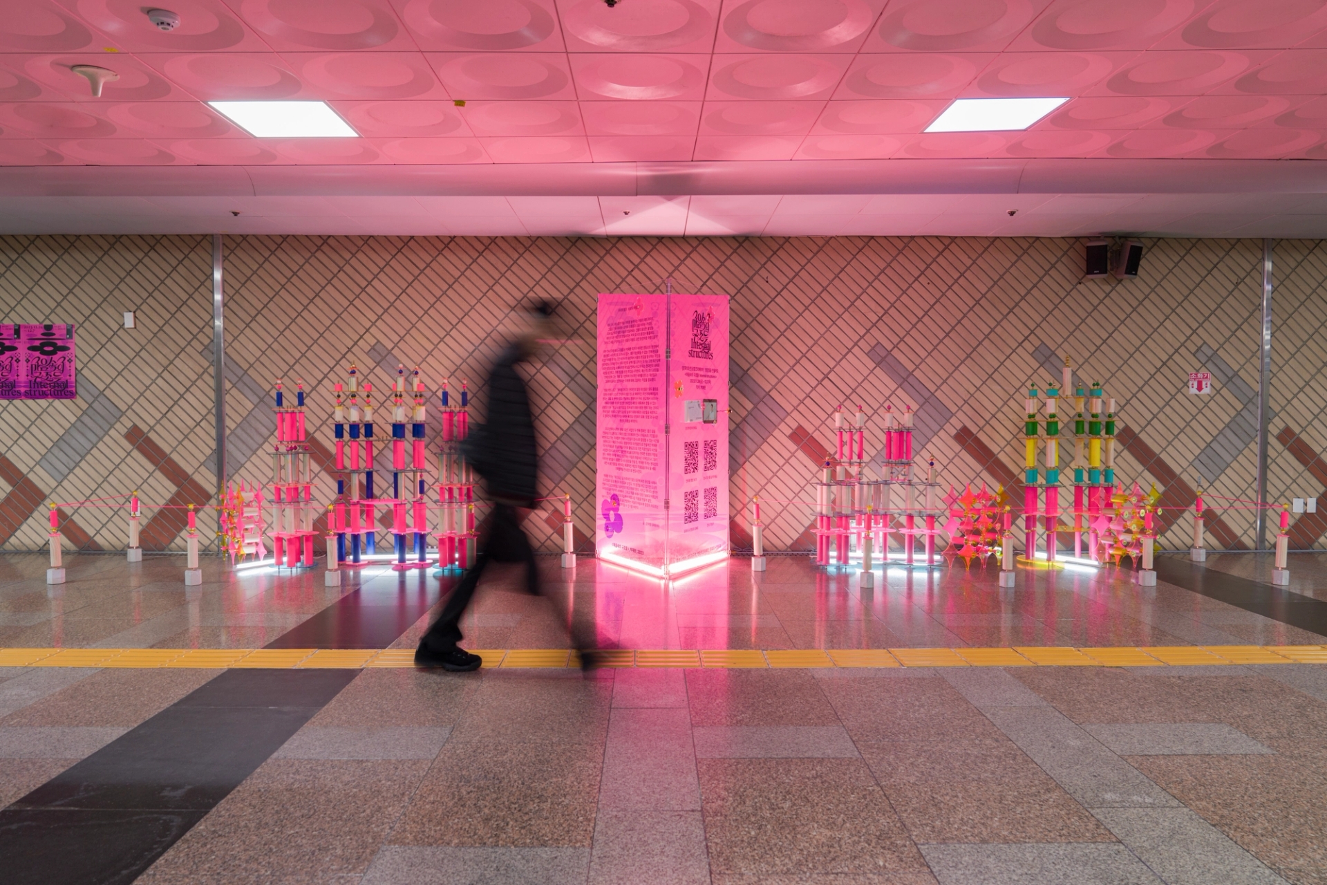 포스터는 "매혹의 언어"를 시각적으로 해석하여 표현한 그래픽으로 구성되어있다. 타이포그래피와 도형이 조합된 중앙의 그래픽은 박재환작가의 작품의 구조와 닮아있으며, 수용자로 하여금 토템 혹은 신비로운 동상처럼 보여지도록 제작했다. 화려하고 매혹적인 포스터는 일상에 지친 직장인의 불안정한 마음, 복잡한 내면을 잠시 잊게 한다. 매혹, 종교, 우상 등의 이미지에서 시작하여 만신의 춤을 소재로 하는 작품까지 존재하는 전시인 만큼, 유기적인 이미지가 담긴 역동적인 타이포그래피를 제작했다. 만신의 휘날리는 천의 이미지, 우상이란 존재의 강렬하고 화려한 이미지를 표현하기 위해 획의 형태를 다양하게 사용했다. 국문 타이틀을 메인으로 전개된 타이포그래피는 서로가 감싸고 얽혀있는 형태를 이루고있으며, 이는 "매혹"이라는 전시 주제를 시각적으로 표현한것이다. 그래픽은 작가가 표현하는 우상, 토템의 이미지를 표현하기 위해 각 도형 요소를 조합하여 또다른 토템을 재생성했다. 바닥면의 원 요소에서부터 층위를 가지며 상승하며 빛을 투과하는 요소로 구성되는 그래픽은 작가의 작품, 전시의 분위기를 표현한다.