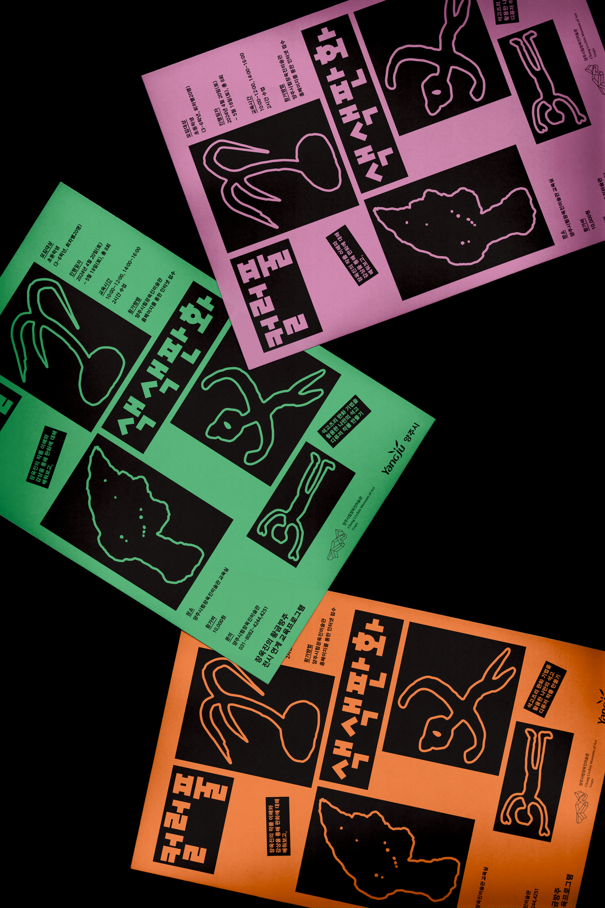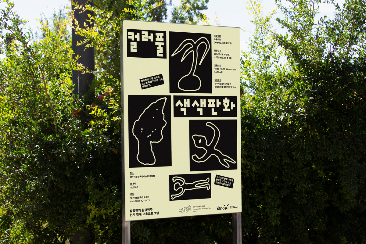 장욱진의 이상세계를 판화로 표현하는 교육 프로그램 《컬러풀; 색색 판화》 그래픽 디자인 👧🏻🌲동심을 자극하는 장욱진작가의 동화적 요소의 조합과 판화의 특징적 표현기법을 활용하여 포스터를 제작했다. 화가 장욱진의 작품 속 등장하는 요소들을 음각 판화로 제작해 찍어낸듯 표현하고, 각각의 음각판화 요소들을 정돈된 레이아웃 위에 규칙적으로 배치하여 프로그램 재료인 판이 정리되어있는듯한 모습을 표현했다.장욱진의 작품속 등장하는 나무와 어린이를 통해 생명에 대한 애정과 순수한 이상적 내면세계를 표현했으며, 프로그램명에 등장하는 키워드인 ’컬러풀‘과 ’색색‘을 표현하기 위해 다채롭고 풍부한 컬러표현으로 구성했다. 낮은 연령대를 대상으로 하는 프로그램인 만큼, 타이틀에 어려보이는 인상의 탈네모꼴 서체를 활용하여 타이포그래피를 진행했다.