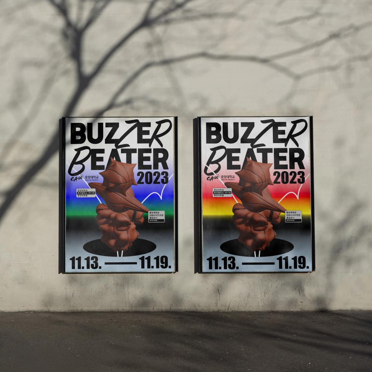 학생들이 각기 다른 모양의 작품을 만들어 전시하는 과정을, 공을 쏘아 올리고 공이 골대에 들어가기 직전 각자 다른 형태로 변화하는 모습으로 표현한 시안이다. 버저비터의 특성 상 벨이 울린 시점이라는 마감 기한이 존재하기 때문에, 마지막 순간에 하단부에 있는 원이 닫히는 형태로 루핑되도록 제작했다. 산업 디자인과의 특성 상 자주 접하게 되는 모델링 프로그램의 X, Y 축을 배치하여 공학적인 느낌을 불러일으키도록 의도하였으며, 메인그래픽 주변에 배치된 전시 장소 및 전시 정보는 프로그램 내에서 우클릭 시 나타나는 보조 창을 모티프로 디자인되었다.메인 타이틀 <Buzzer Beater> 타이포그래피는 정돈된 고딕체와 드라마틱한 필기체를 섞어짜기하여 제작했다. 이는 버저비터라는 전시 주제 특유의 역동성과 틀에박히지 않은 학생작품의 개성과 활기를 표현한것이다. 3D