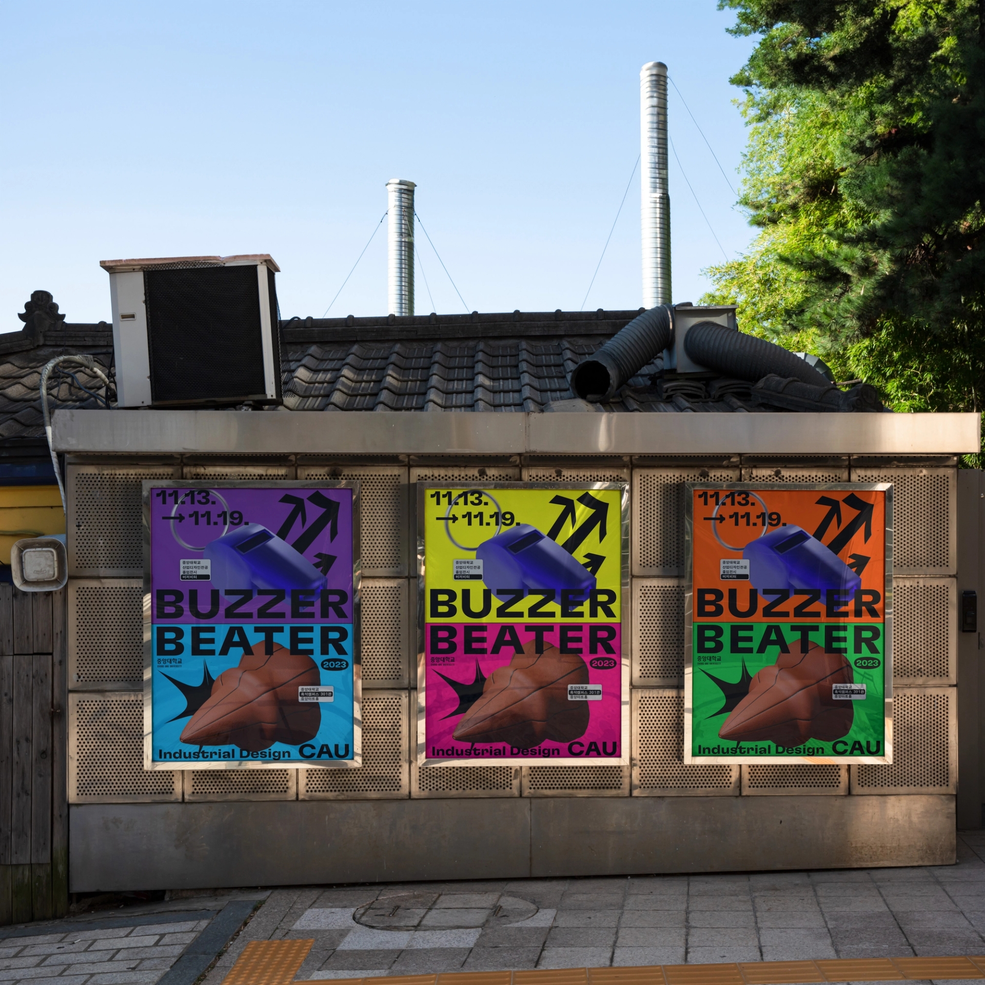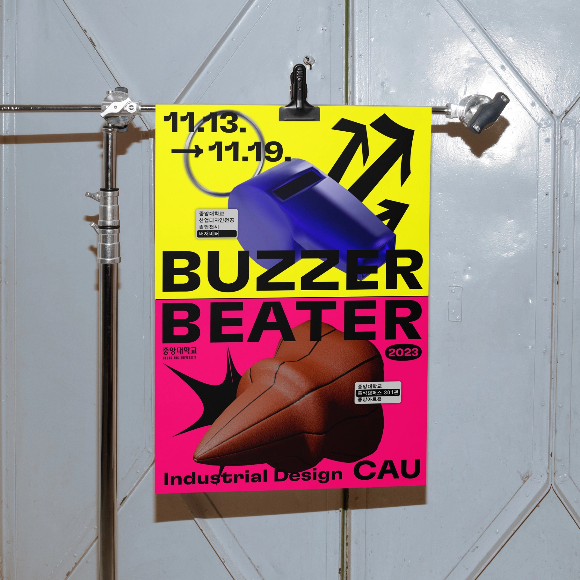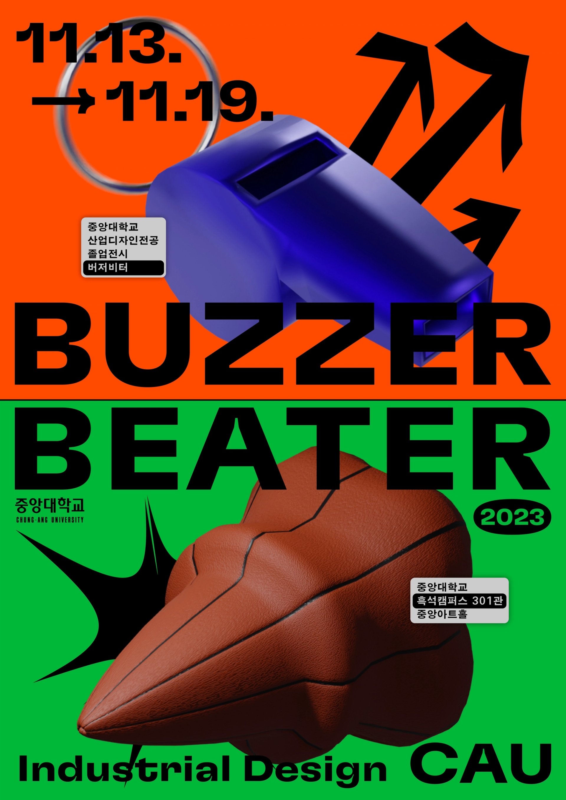 졸업전시에 전시되는 작품의 톡톡 튀는 독창성과 활기에 주목한 시안이다. 종료를 알리는 버저 소리를 호루라기라는 모티프를 통해 시각적으로 상상되도록 유도하고, 골이 들어가기 직전의 공의 모습을 준비태세를 갖추는듯한 모션으로 유쾌하게 표현했다. 호루라기와 공 모두 본연의 움직임과 형태에서 벗어나 자유롭게 행동하며, 포스터 상단부의 호루라기가 울리는 동시에 공이 나타나 제 모습을 자랑하는 것을 표현하기 위해 카툰을 연상시키는 상하를 분리한 레이아웃으로 제작했다. 졸업전시의 순간을 경기에서 골이 들어가는 순간으로 해석하여 보다 활기차고 즐거운 축하의 자리로 느껴질 수 있는 팝한 컬러의 배색을 백그라운드에 적용했다. 3D