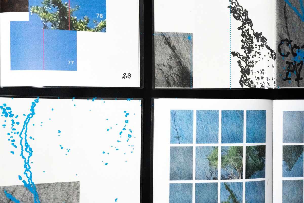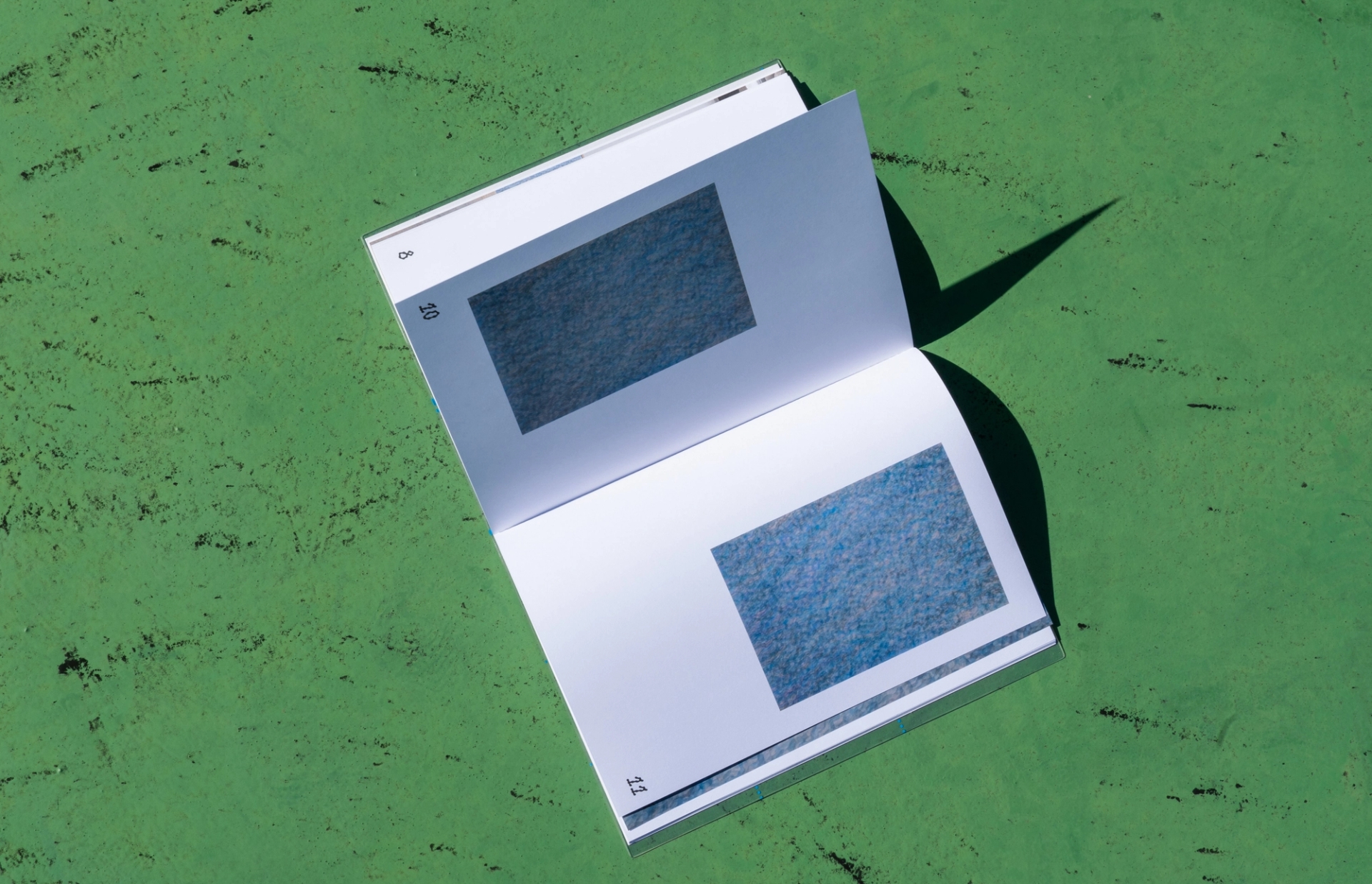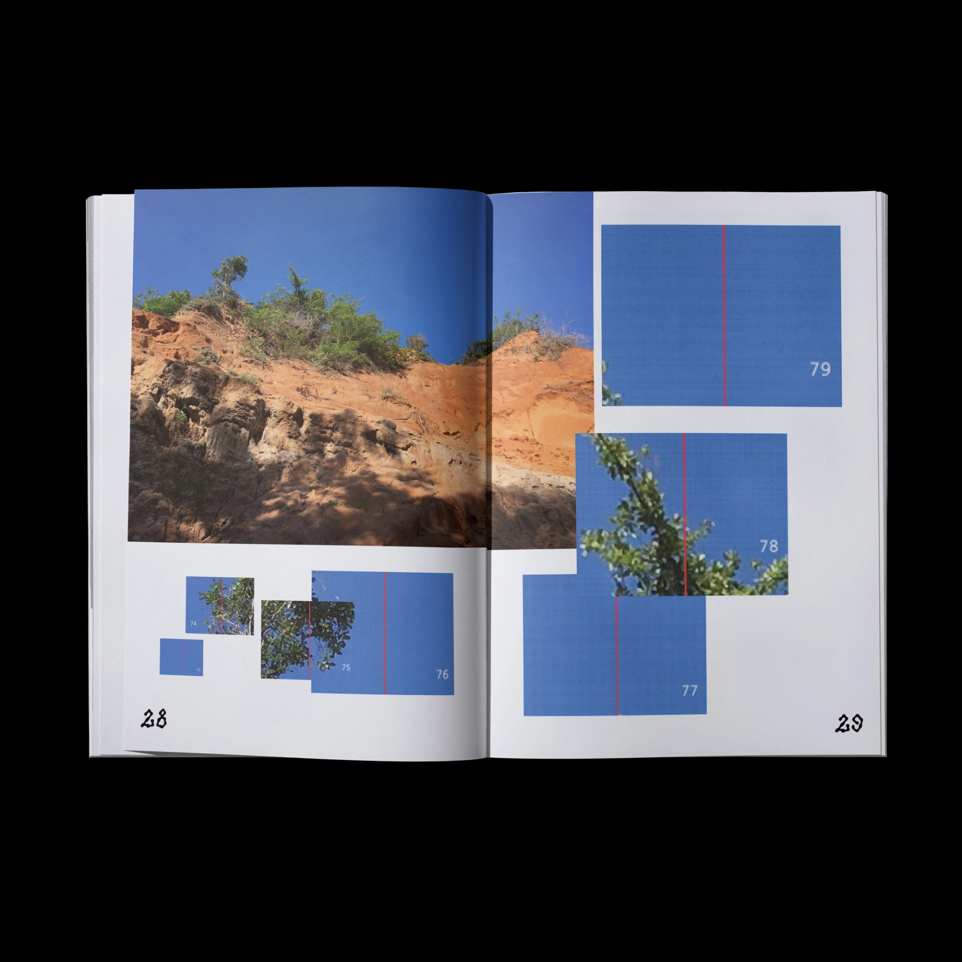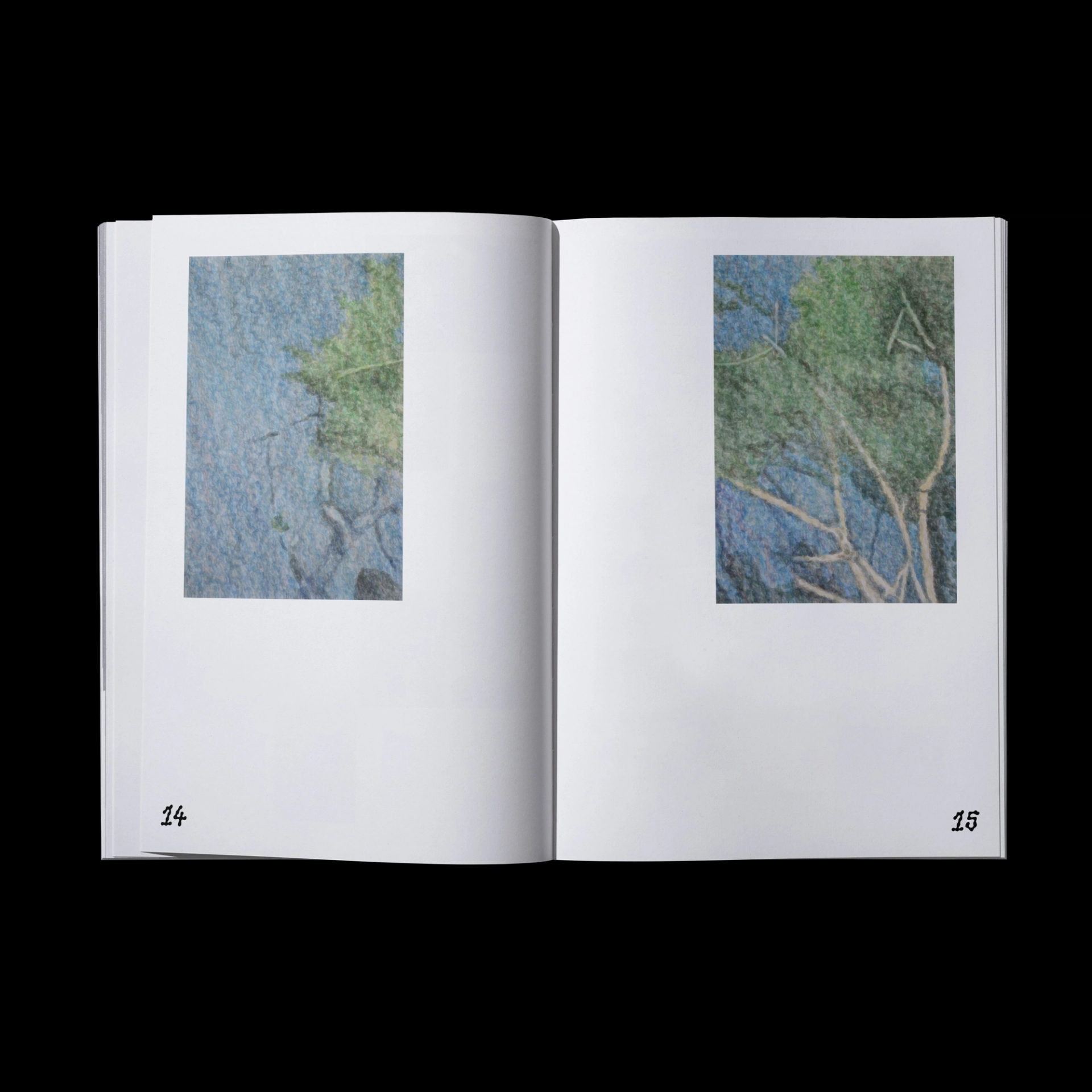화집의 커버에 한겹의 유리를 연상시키는 PVC커버를 덧대어 작품 사진과 작품 이미지를 재해석한 그래픽을 겹쳐보이게 구성했다. 커버를 드러내면 그제서야 작품의 이미지를 직접적으로 마주할 수 있다. 이것은 편견을 ‘걷어내다’를 행위로서 표현한 것과 동시에 작품이 표현하고자하는 감춰진 이면의 모습을 강조한 것이기도 하다. 작품을 재해석한 그래픽의 경우, adobe illustrator 이미지추적 기능을 사용하여 확대의 이미지를 한 번 더 왜곡시키는 과정을 통해 탄생했다. 여기서의 왜곡은 작품을 책으로 엮어내는 과정 속, 디자이너의 관점에서 발생하는 또 한 번의 확대를 상징한다. 확대할 때 좌측하단부터 우측상단까지 쭈욱 늘이는 행위를 표현하기 위해 작품의 이미지를 좌측 하단에 작게 배치하고, 작품을 재해석한 그래픽을 커버 전체에 꽉차게 배치했다. 좌측하단에 작게 배치된 이미지와 PVC커버에 꽉 차게 그려진 푸른색 그래픽이 대비되는 모습을 통해 독자들이 『Command Plus Plus』라는 화집의 이름과 작품의 의미를 떠올릴 수 있도록 디자인했다. 작가의 작업일화 중 adobe photoshop 프로그램에서 작품 사진의 확대와 축소를 반복하게 되며 새로운 이미지를 발견했던 경험을 표현하기 위해서 후면 커버에 점선과 마우스 커서를 연상하게하는 화살표 요소를 삽입하였다.