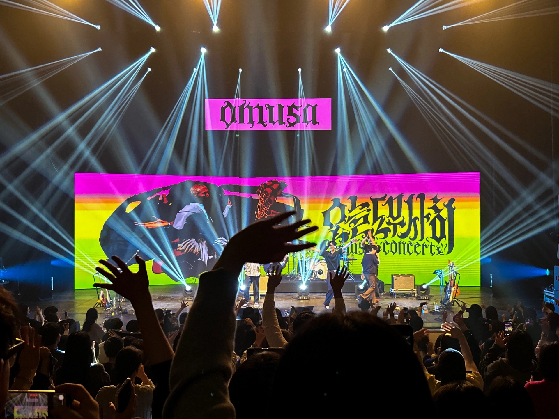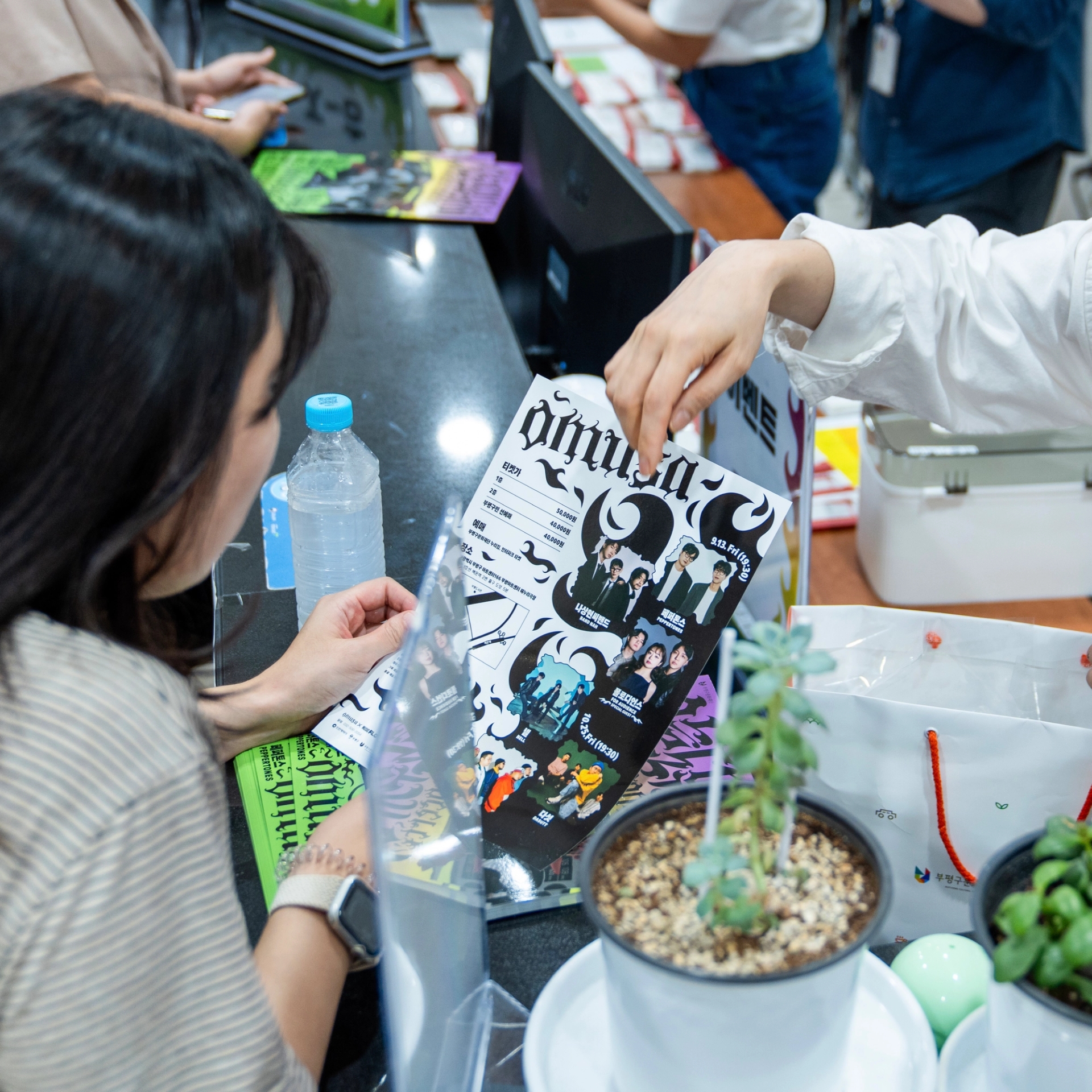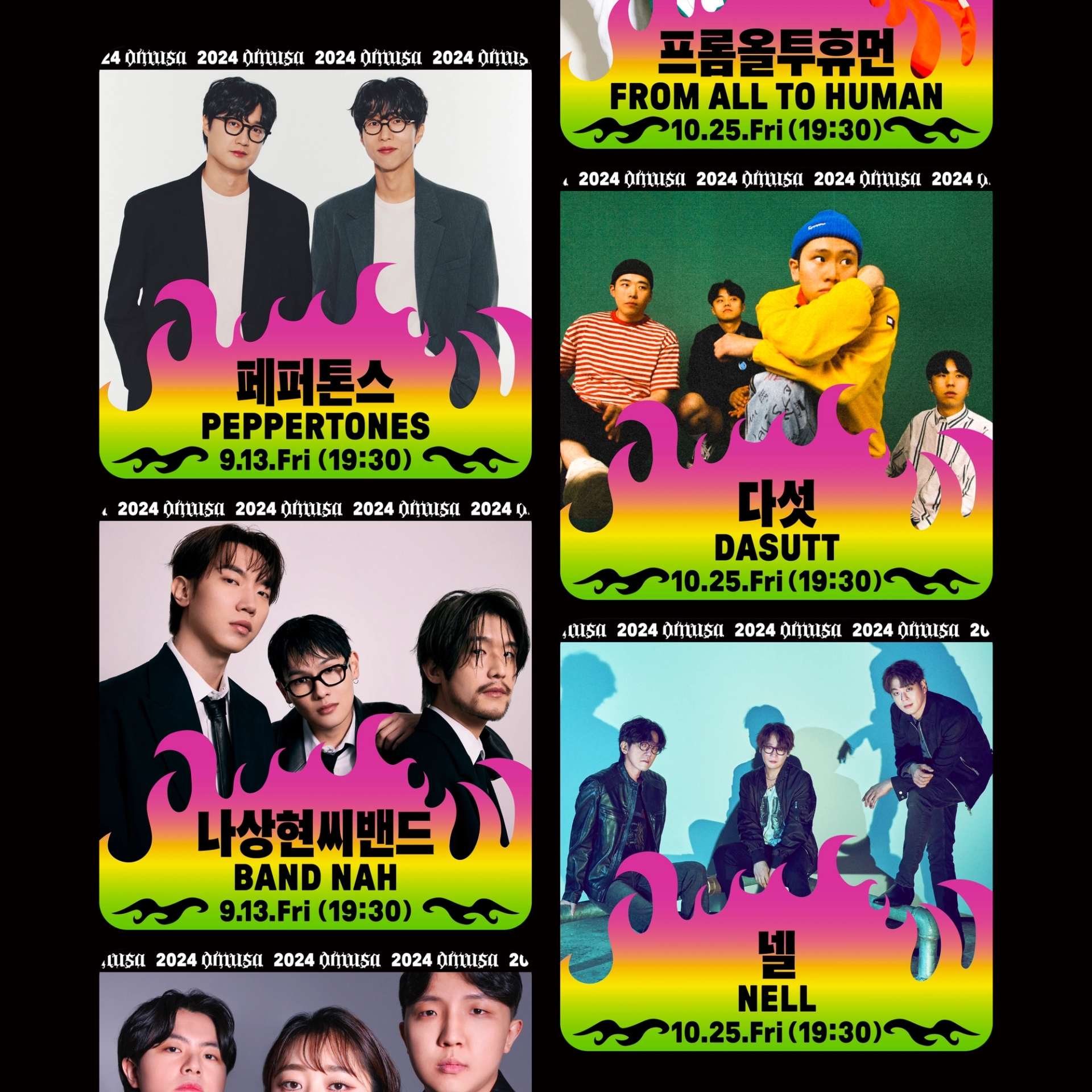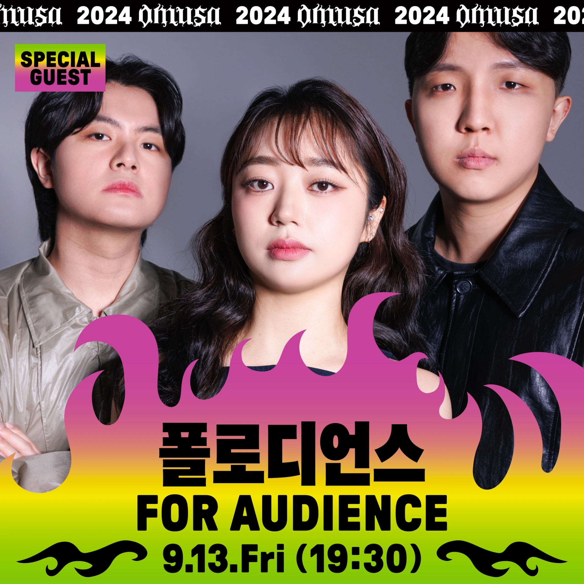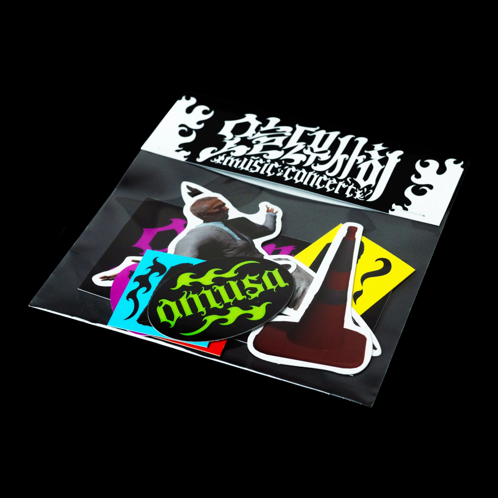 나에게로 날아오는 비둘기, 폭파된 차량, 고함치는 직장 상사, 방전된 휴대폰, 쉴새없이 윙윙대는 모기 … 현대인의 공포를 자극하거나, 크고 작은 위협이 되는 존재들을 로우폴리 3D오브젝트를 통해 시각화했습니다. 포스터 지면 곳곳에 빼곡히 배치된 위험요소로부터 ‘오늘도 무사히’ 살아남은 우리를 표현하여, 역설적으로 그러한 위험요소와 투쟁하여 생존했음에 자신감을 얻을 수 있도록 의도하여 디자인했습니다. 위험을 상징하는 오브젝트를 의도적으로 왜곡해 표현함으로서 《오늘도 무사히》 공연을 유머러스하고 트렌디하게 인식하게 만들고, 편견이 만든 프레임에 저항하고 자유를 추구하는 음악의 정신을 표현했습니다. 이글이글 타오르는 《오늘도 무사히, OMUSA》 타이틀 레터링은 공연의 다이내믹함을 암시합니다. 또한 스트릿 아트의 ‘그래피티’ 표현방식을 통해 락, 힙합, DJ, 비보이 등 다양한 서브컬처 음악장르와 맞닿아있는 《오늘도 무사히》의 아이덴티티로 기능하고, 다양한 MD상품으로 확장할 수 있도록 제작했습니다.