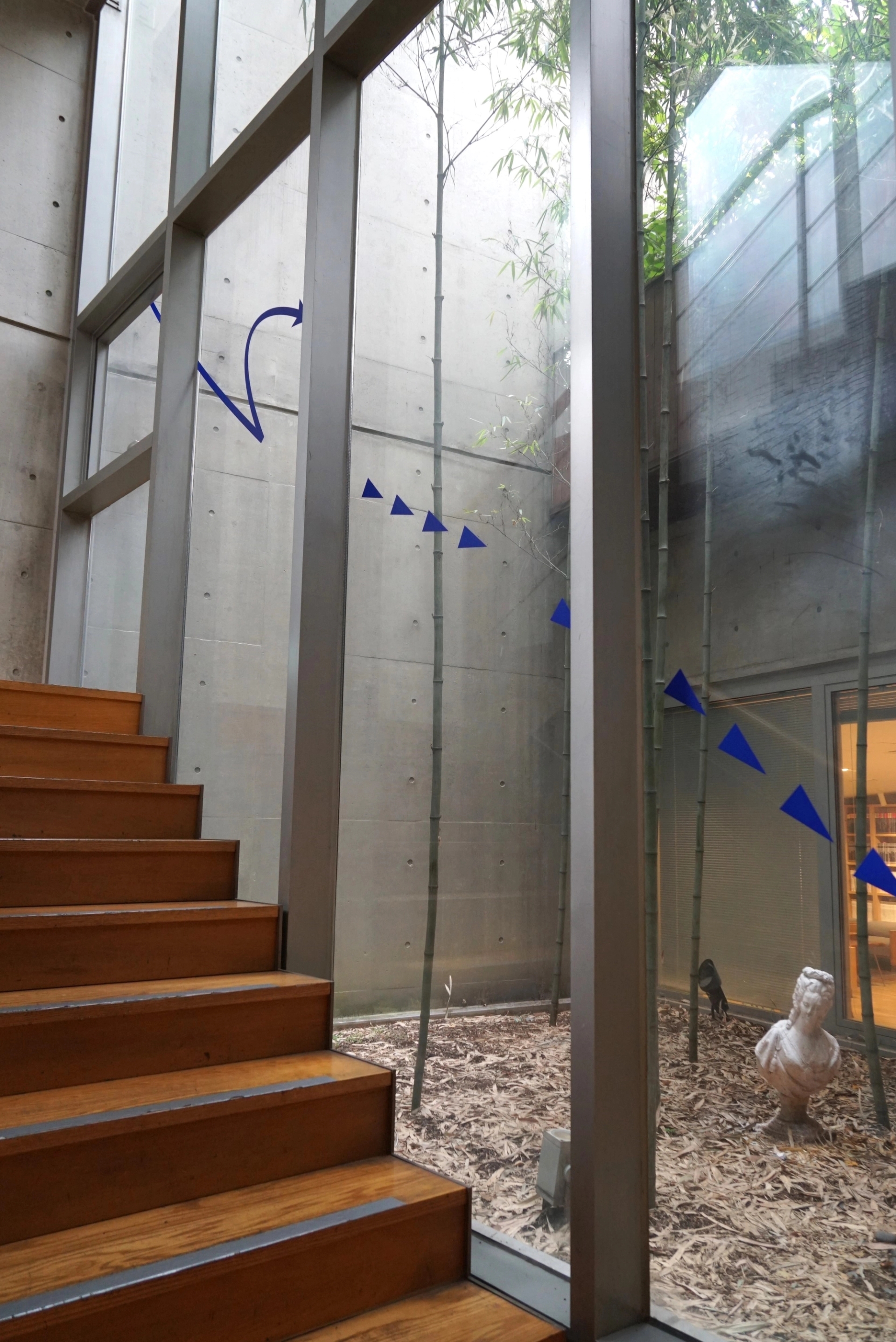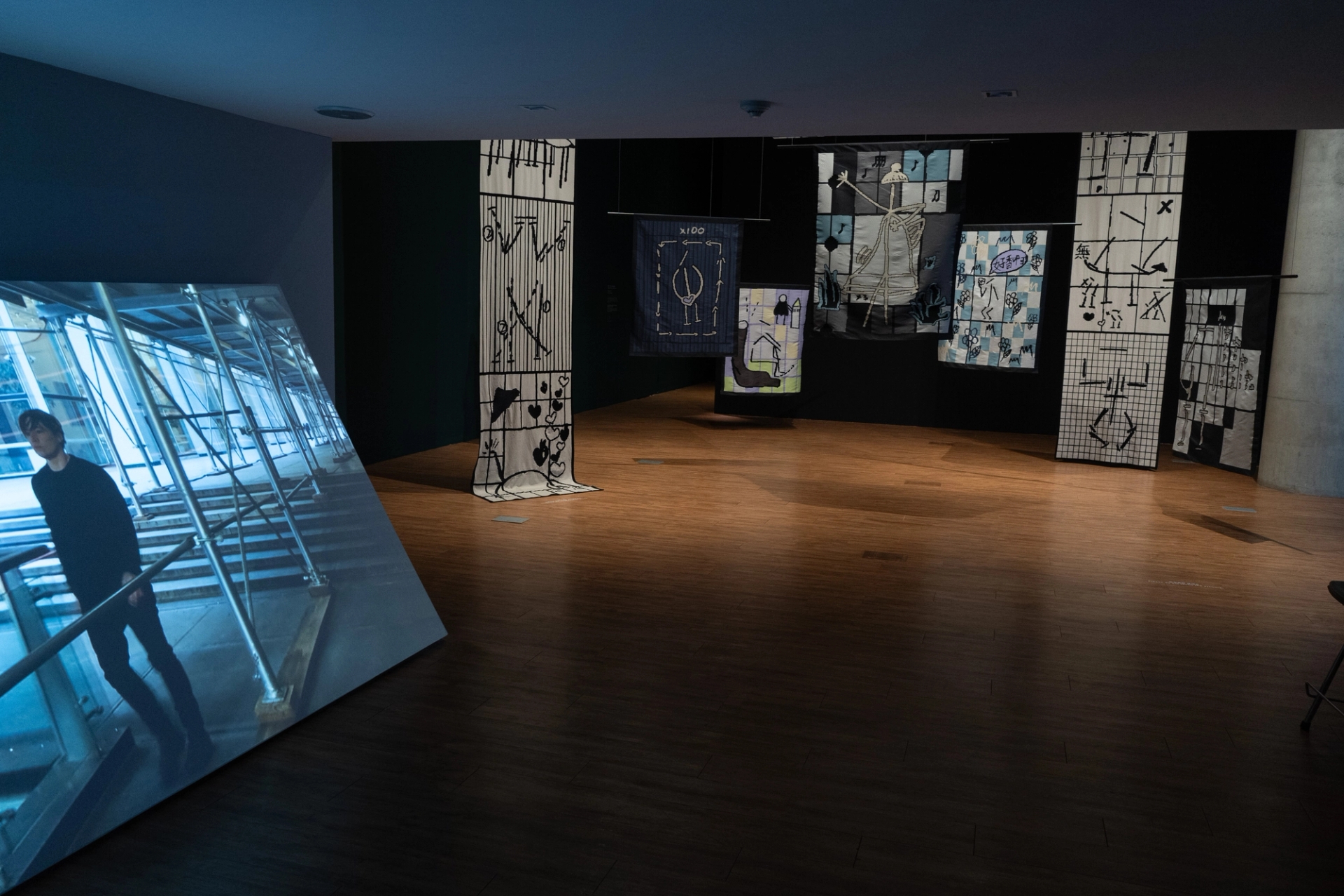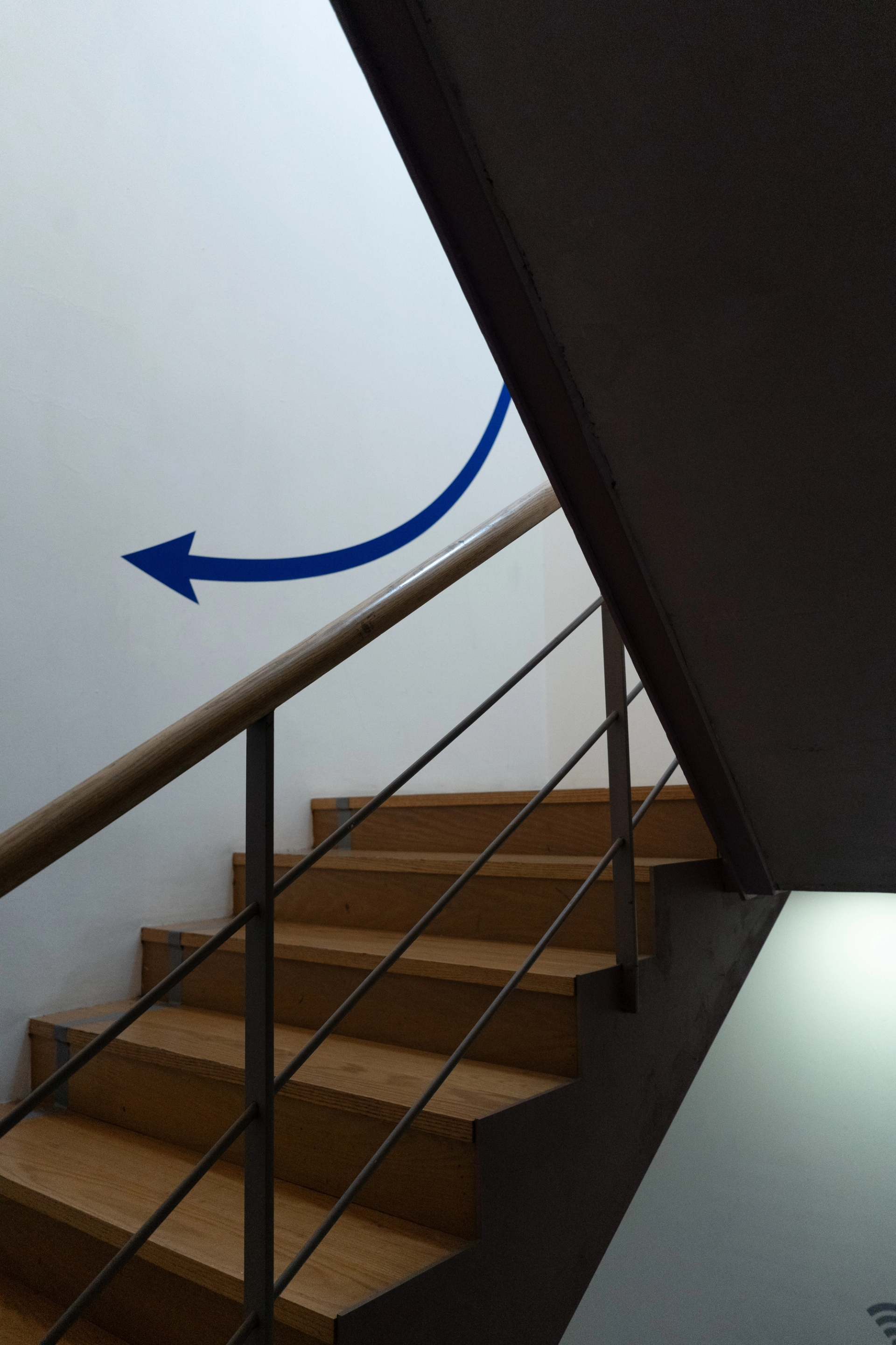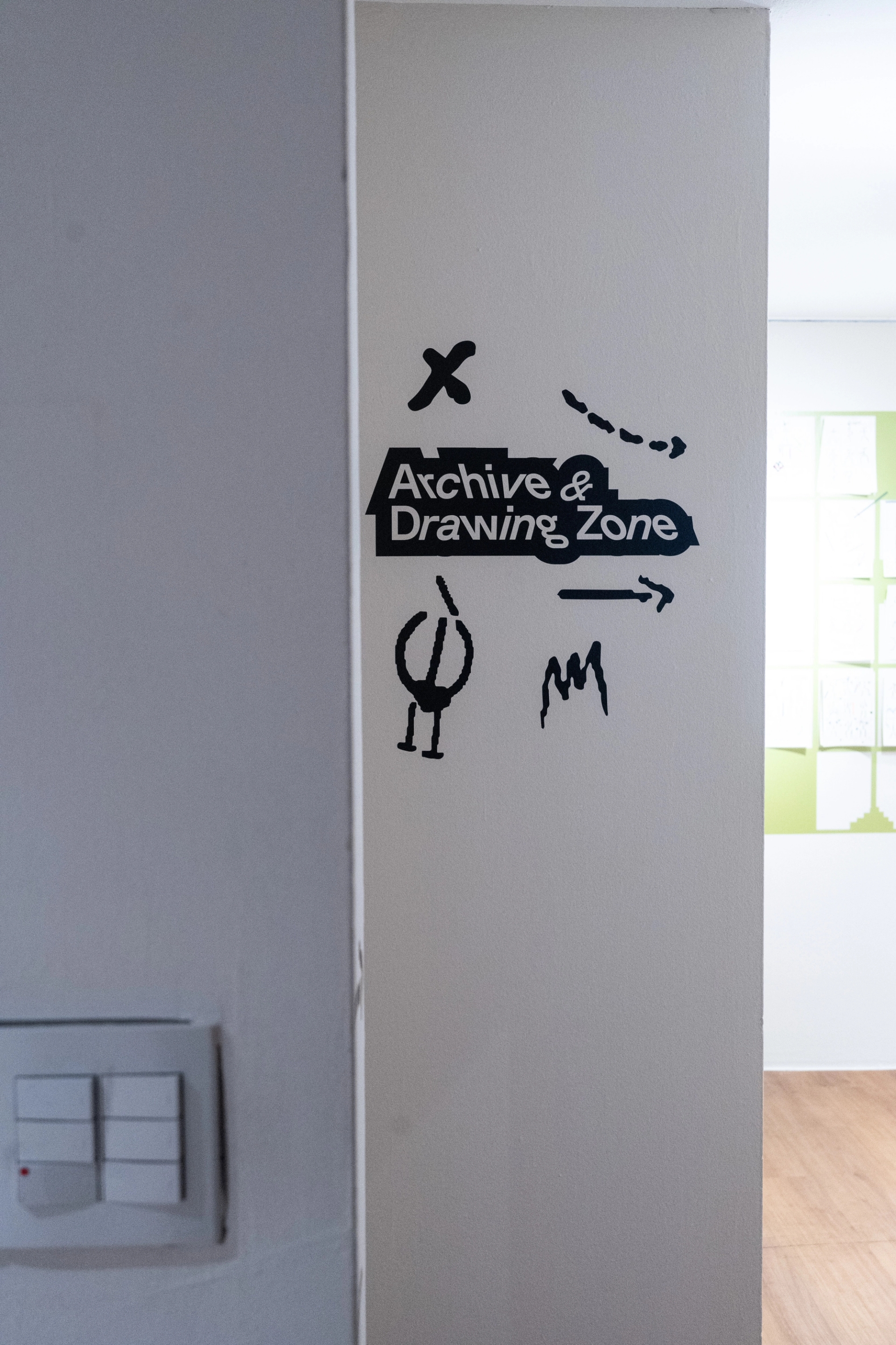 걸음은 ‘박(beat)’을 가진다. 일정한 수의 박이 모여 박자를 만들고, 연속적인 리듬을 만들어낸다. 걷기의 흔적이 발자국이라면, 음악의 발자국을 기록한 것은 악보라고 해석하여 포스터의 전체적인 형태를 악보의 형식에서 본따 제작했다. 전시 시작일과 종료일 사이에는 전시 기간 동안 참여작가 개개인의 걸음이 지속된다는 의미에서 악상기호 이음줄을 사용하고, 참여작가 크레딧과 악보의 마디 기호를 함께 표기하여 걷기와 음악을 연관 지어 표현했다. 포스터는 상하가 분리된 레이아웃처럼 보이게 제작하였으며 타이틀이 걸어가서 화면밖으로 사라지는 것을 상상할 수 있도록 글씨의 일부를 프레임 밖으로 넘치게 배치했다. 좌우로 번갈아가며 들쑥날쑥 기울여진 타이포그래피는 넘어지지 않기 위해 적절한 타이밍에 계속해서 반대 발을 디디는 ‘걷기’ 동작을 모티프로 하여 만들어졌다. 포스터를 포함하여 전시 그래픽 곳곳에서 보여지는 선형의 그래픽은 각각 2/4박자, 3/4박자, 6/8 박자 지휘법의 일부를 확대하여 디자인 요소로 사용한 것이다. 신체를 경유하는 음악적 행위를 연결짓는 본 전시와 선율의 움직임을 신체로서 표현하게 하는 지휘 기호를 연관지었다. 포스터의 가장 뒷편에는 걸음을 내딛거나 춤을 추고있는 사람의 모습을 반복적으로 촬영한듯한 그래픽이 배치되어 걷기의 행위에 내포된 의미를 확장시켰다. 이는 걷기를 일상적 행위에 제한두지 않고 안무적 몸짓으로 들여다볼 수 있도록 묘사한 것이다. 걸음을 내딛는 순간, 혹은 안무의 한 순간을 포착한듯한 이미지에서 ‘움직임’이라는 요소를 강조하여, 정지된 포스터임에도 움직이는듯한 인상을 받을 수 있도록 의도했다. 이는 디지털영상이 전환될 때의 글리치나 음악의 파동을 연상시키기도한다.