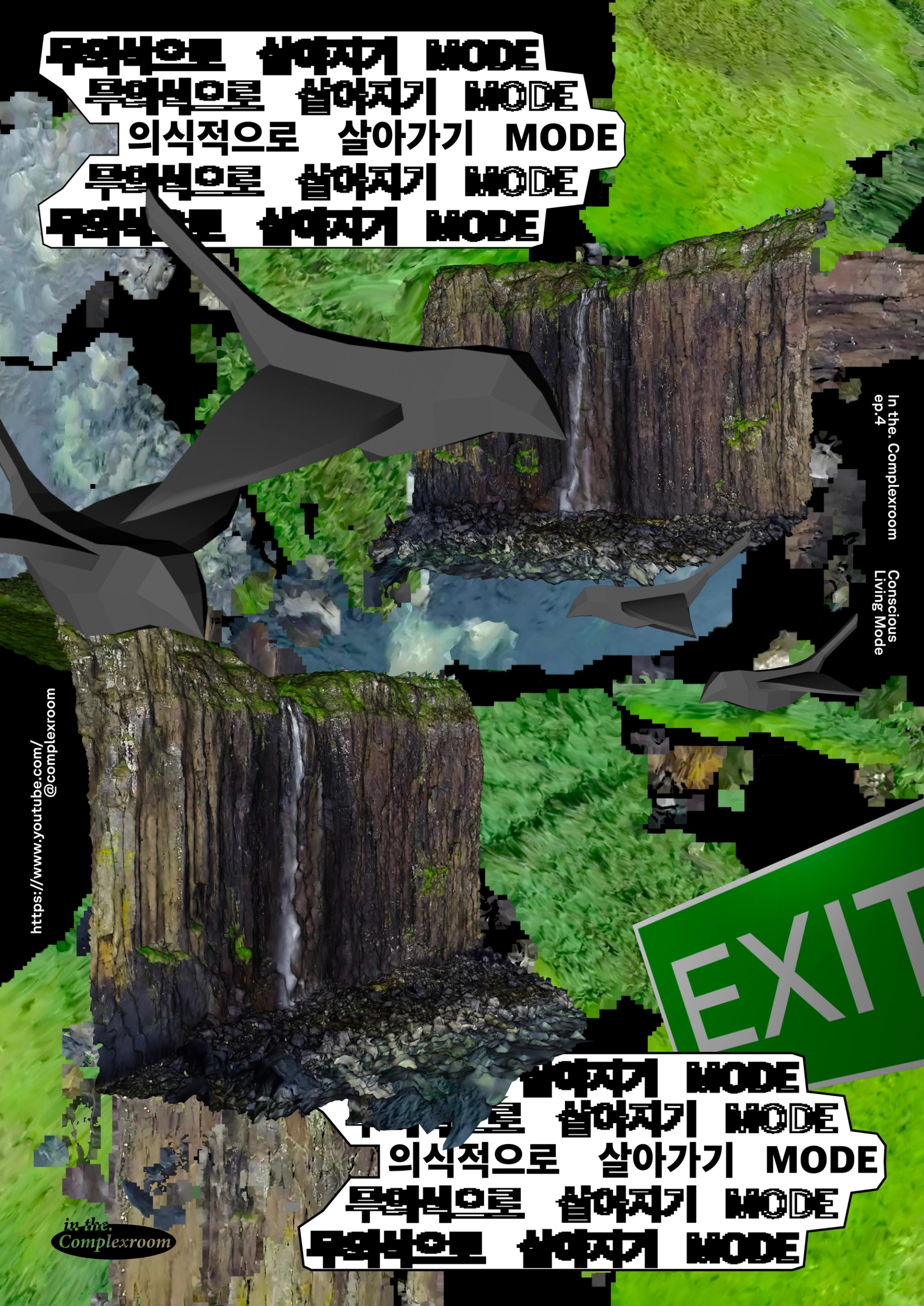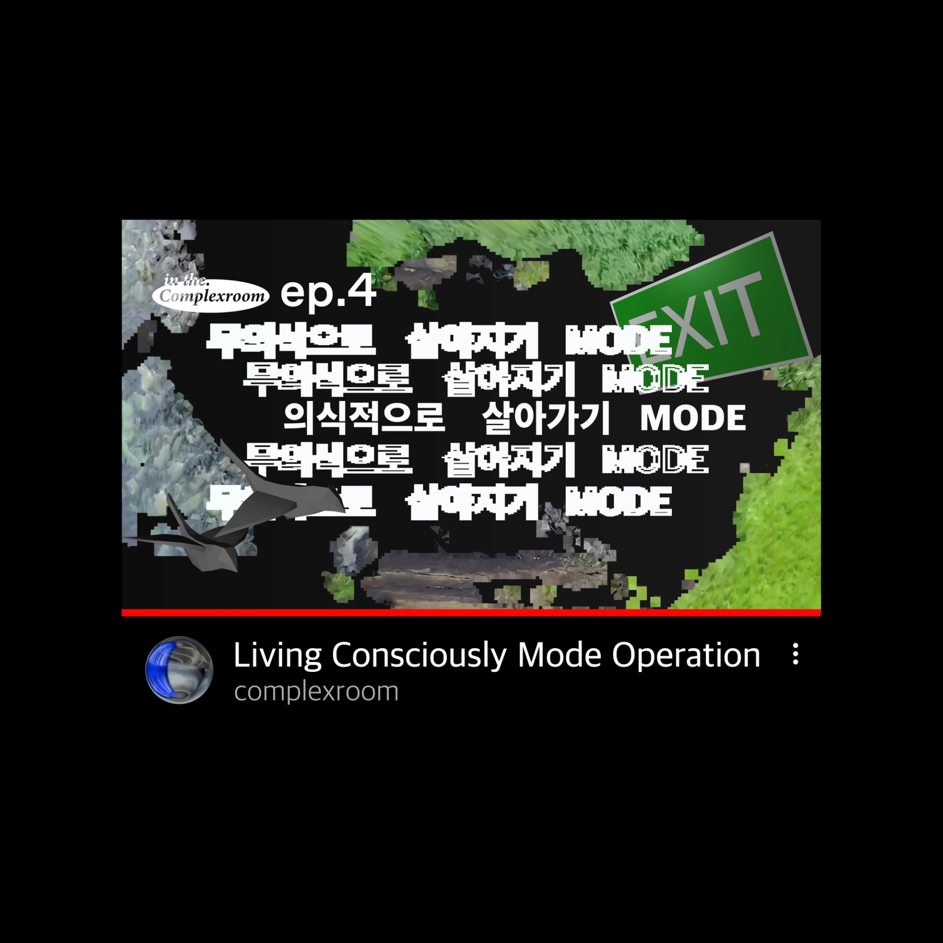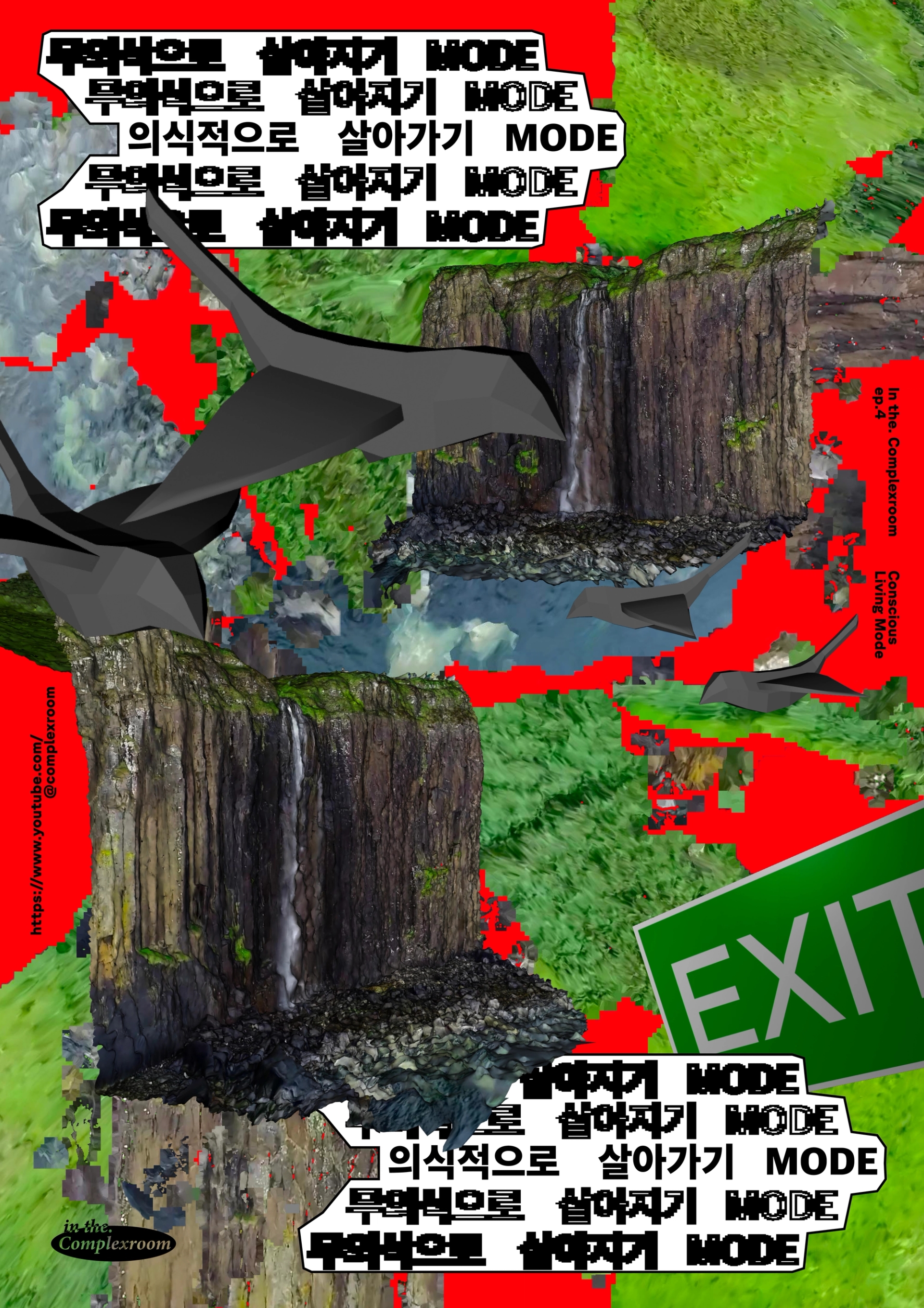 비상지나친 안정적인 삶 추구로 인해 <Living Unconsciously Mode>가 장기간 지속되어, 뇌가 반영구적인 디폴트 모드 네트워크 상태에 돌입하였습니다. 이 상태에서 그는 행복을 느낄 수 없습니다. 이에 <의식적으로 살아가기 모드>를 가동합니다. 이 모드는 반드시 절차에 따라 진행해야 하며, 무의식으로 진행되던 기초 감각을 깨워 불편함을 유발할 수 있습니다.1. 의식적으로 숨을 쉬세요.2. 눈을 의식적으로 반복해서 감았다 뜨세요.3. 의식적으로 침을 삼키세요.4. 의식적으로 혀의 위치를 입천장에 붙이세요.이로서 기본적인 자극과 반응은 의식화 되었습니다. [살아가기 모드]에서 가장 중요한 것은 의식적으로 계속해서 생각하는 것 입니다. 생각하는대로 살지 않으면 사는대로 생각하게 됩니다. 디폴트 모드 네트워크 상태를 지속적으로 활성화 시키는 것은 신경 과학 적으로는 비효율을 야기하지만, 초기 [살아가는 삶]을 도입하는데에 큰 도움이 됩니다. 적절한 의식상태와 무의식상태의 균형을 유지하는 것은 중요합니다.계속해서 의식적으로 생각하세요.계속해서 의식적으로 생각하세요.계속해서 의식적으로 생각하세요.계속해서 의식적으로 생각하세요. 무의식의 영역으로 넘어간 아바타 A의 상태를 부식된 타이포와 이미지로 표현하고, 의식적으로 살아가는 존재는 포스터속에서 선명하거나 역동적인 상태로 보이게 제작했다. 크게 두가지 파트로 나뉘어진듯한 영상의 분위기를 붉게 깜빡이는 배경과 사운드의 대비로 표현했다. in the (complexroom) 프로젝트는 머릿속 생각들을 시각화하여 전시한다. 인더그래픽스는 본 프로젝트에 포스터디자인으로 참여하였으며, 썸네일과 동일한 사이즈의 포스터를 통해 YouTube에 포스터를 부착하는 듯한 효과를 내고자 하였다.Story, 3D Motion Design : @complexroomPoster Design: @inthe.graphics Sound : @bibim.sh VIDEO LINK